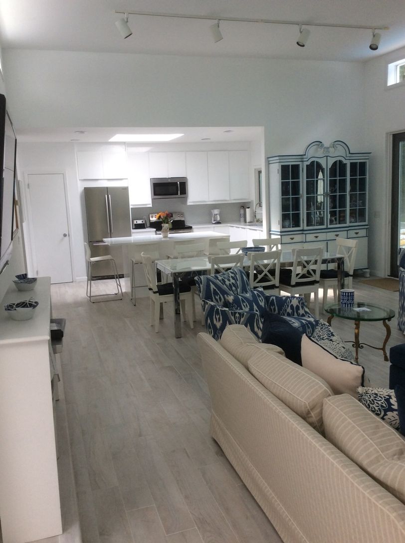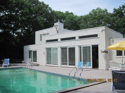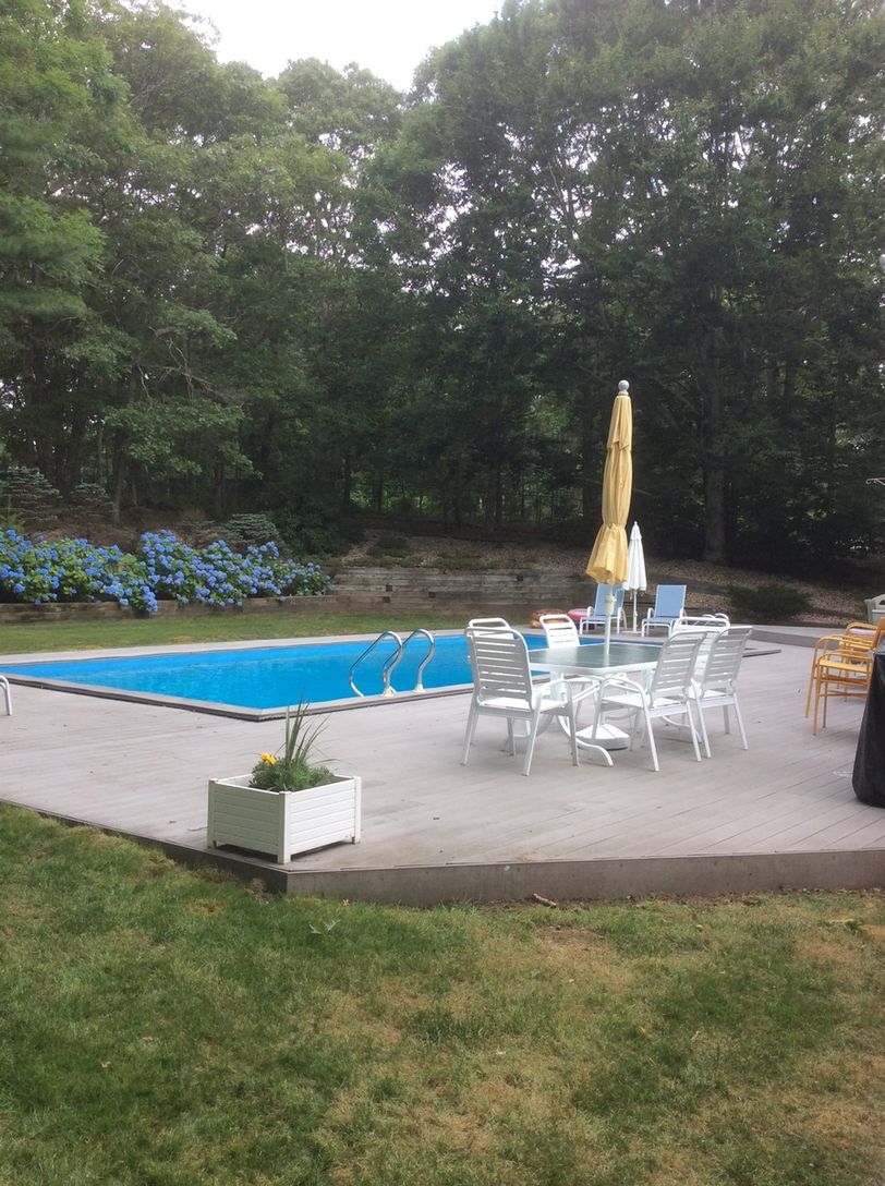 Bright and cheerful contemporary home. Three bedrooms, den with pullout, three full baths and open floor plan. Great decking, privacy and sparkling pool. Close to Southampton village and beaches. Great house with childproof fence. Pet friendly as well.