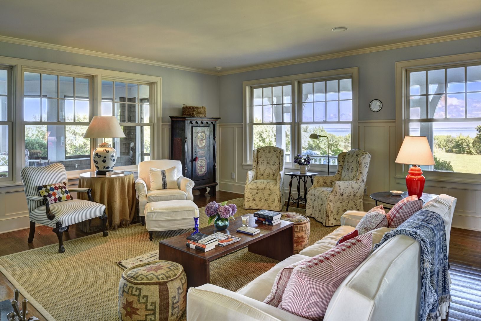 Timeless, sophisticated & chic. Located on over 26 spectacular acres with 500 feet of sprawling private beach on the LI Sound. Understated elegance hallmarks the main house with six bedrooms including 1st and 2nd floor master suites, 4.5 bath, 3 fireplaces, high ceilings, custom paneled walls and crown molding. This property features 2 bedroom guest cottage, pool with pool house, tennis court and 3 car garage. The livable outdoor spaces ad