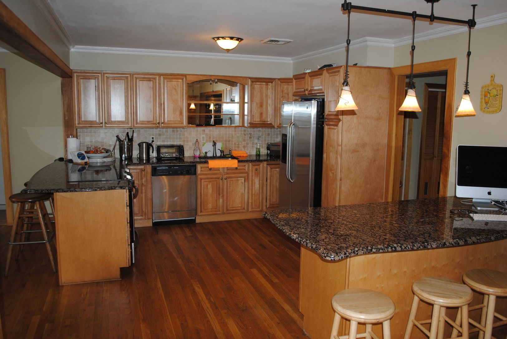 This lovely ranch home features four bedrooms, two baths, gourmet kitchen with granite countertops and stainless appliances, a cozy living room with a fireplace and hardwood floors throughout. The backyard landscaping offers lots of privacy. Lounge by the inviting gunite pool surrounded by a brick patio. Investment potential with strong rental history.
