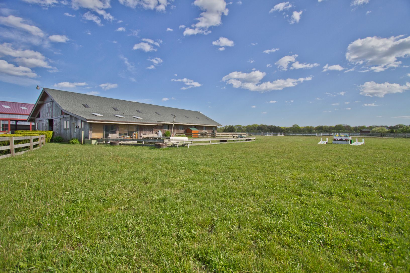 Own a true gentleman's working horse farm! Conveniently located in East Quogue in the Hamptons, the Quogue Pony Farm is an established equestrian facility that sits on approximately 15 acres with stabling for approx. 15 horses, complete with a 1 ½ story 4,000 sq. ft. barn with 12x12 stalls, wash stalls, tack room, lounge, office, and new 100 ft. by 200 ft. indoor arena. The property also offers grass paddocks, all weather riding rings, a large