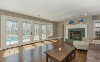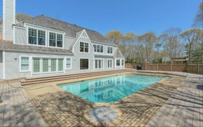 Move right into this completely restyled 4 bedroom 3.5 bath home with all new windows and exterior doors. Five sets of new French doors flood the living area with light. New deck awning will make poolside dining a pleasure while you enjoy the gunite pool and amazing parklike grounds great for all of your Hampton entertaining and permit in place for tennis. Kitchen with breakfast nook and stunning new stainless steel appliances and gleaming wo