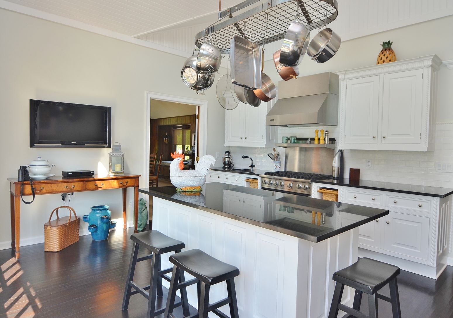 Tucked away behind privet hedges and mature trees and shrubs, you'll find an enchanting home and property on a deep water creek south of the highway in Quogue. An expansive lawn leads to the quaint fisherman's studio and large floating dock beyond. This charming country home features westerly facing French doors that fill the living spaces with an abundance of light and afford lovely views to the pool, entertaining terrace, dining gazebo, gar