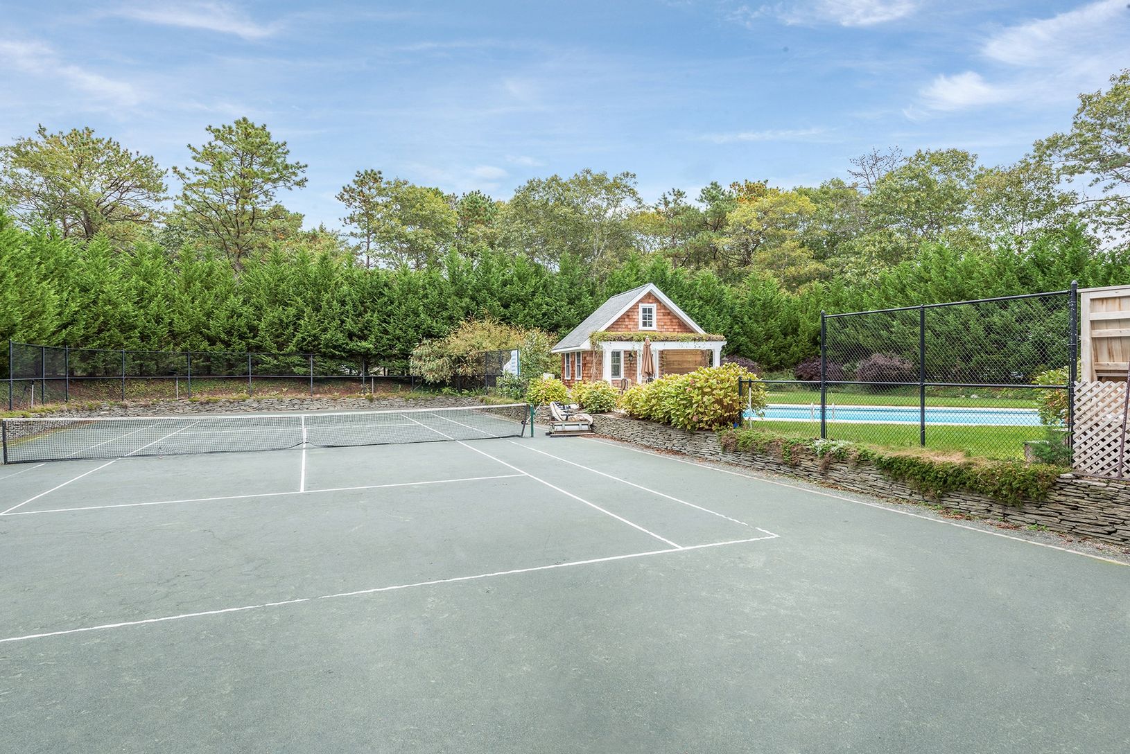 Builders-own postmodern/transitional showplace on a sprawling 1.1+/- acres in desirable Quogue Village with five bedrooms and five baths on 4,000+/- sq. ft. of living space, completely remodeled in 2007. Enjoy a gourmet kitchen with granite counters, living room with two-story stone fireplace, dining room, office, laundry room, oak floors throughout, two-car garage and unfinished basement. Outside you'll enjoy mahogany decking, built-in Weber