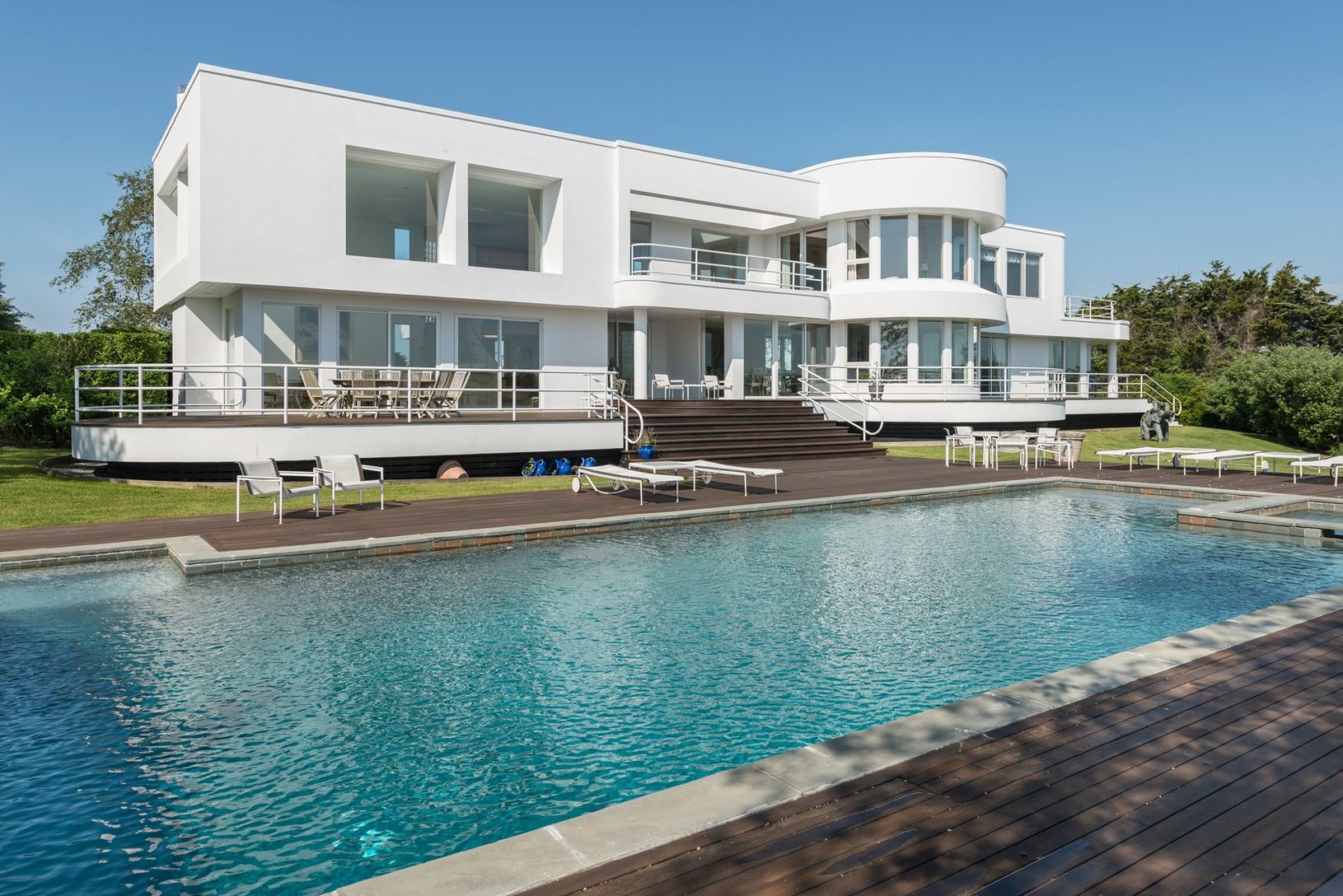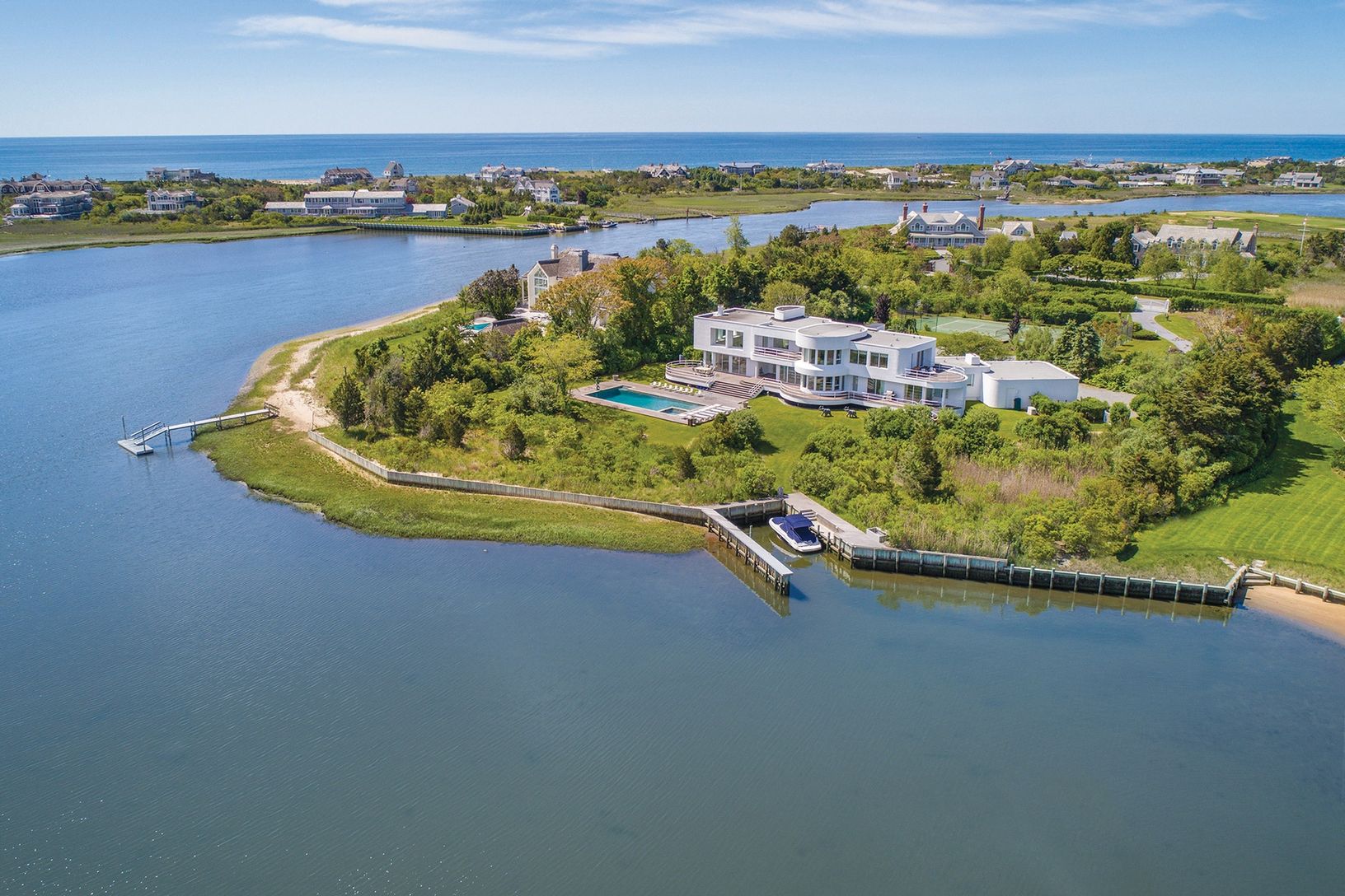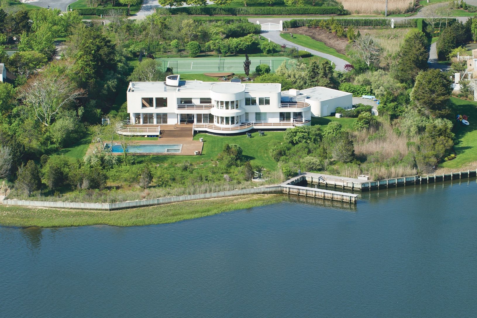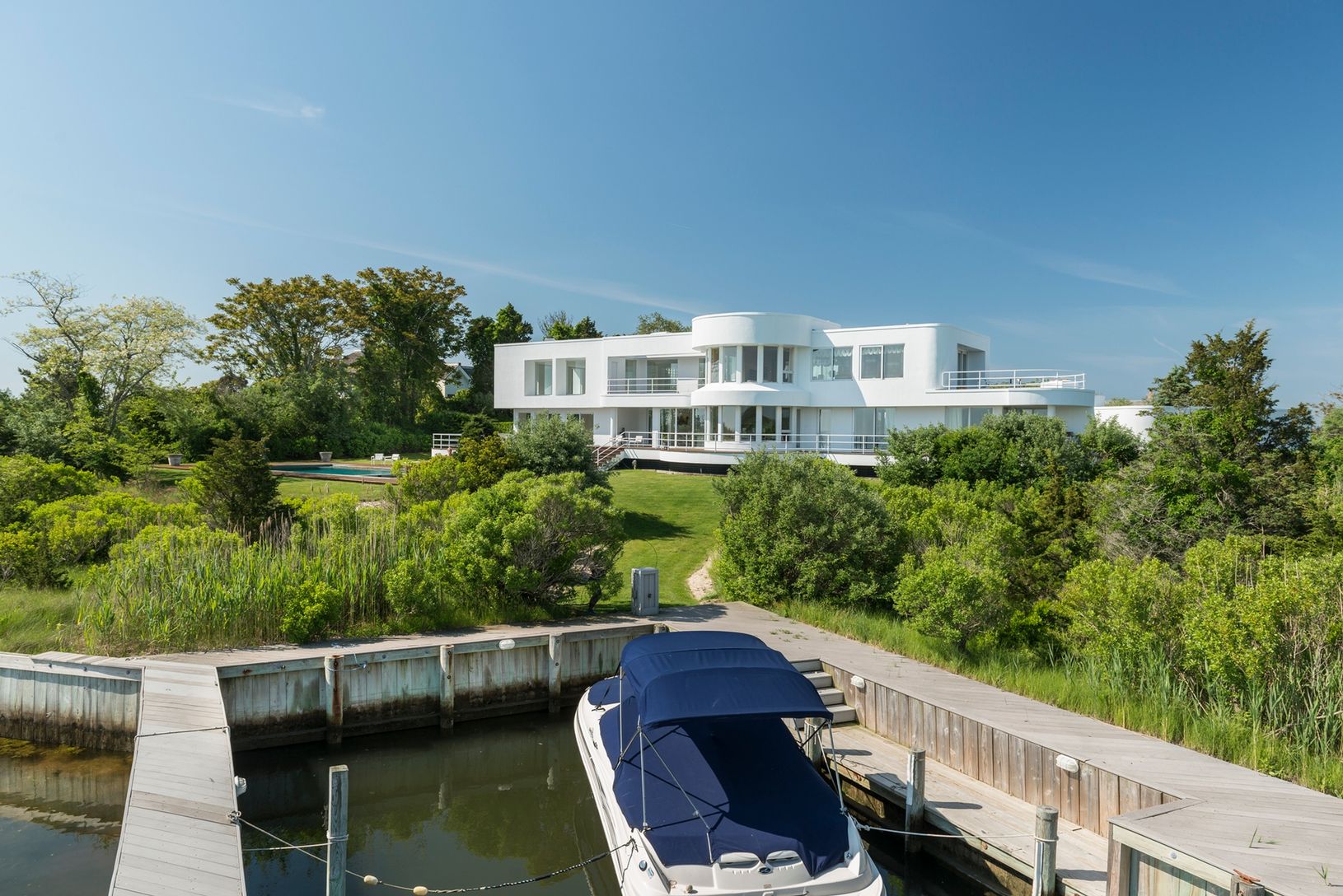Rarely does property of this magnitude come on the market. The dramatic, modern, four bedroom, 7,000+/- sq. ft. home is on 2.8+/- acres with 288' of frontage on wide open waterfront. The bulkheaded property has a large boat slip, full size tennis court and a heated gunite pool. And, this very private and special home has the best address in Quogue.