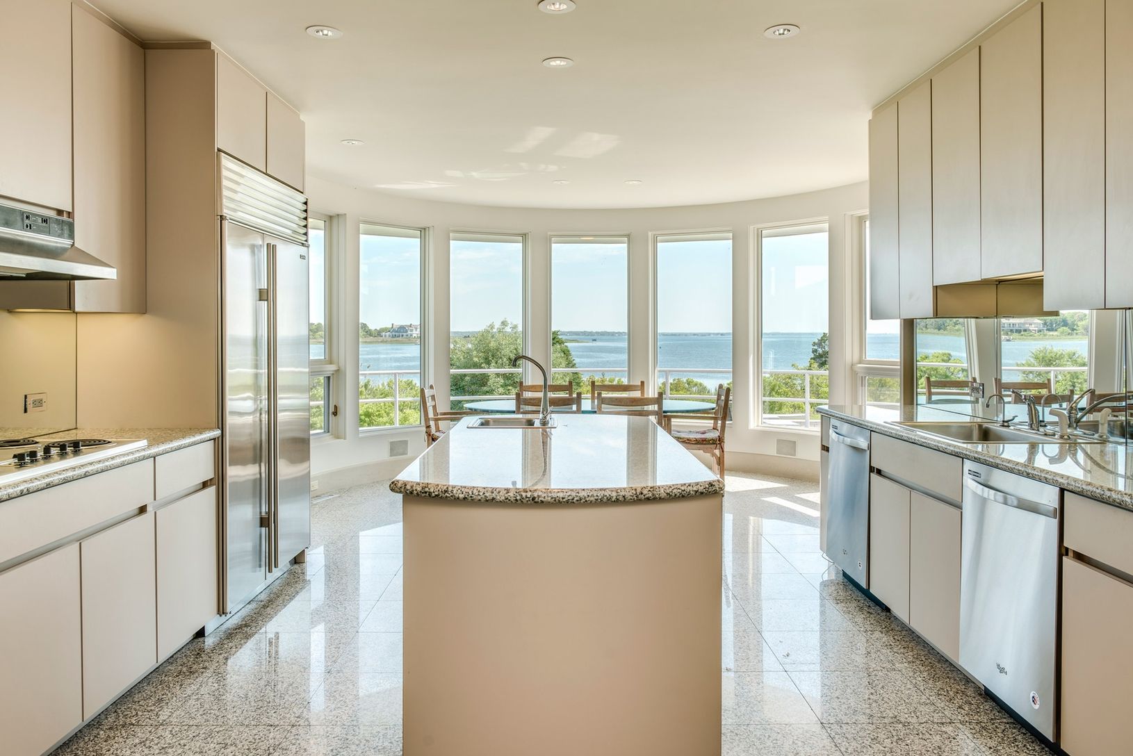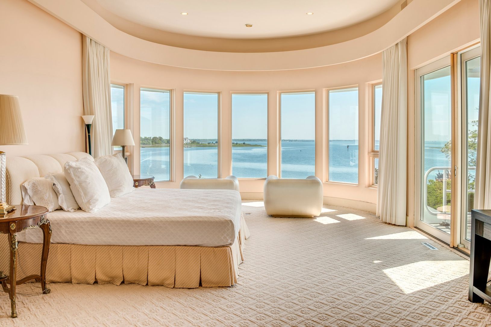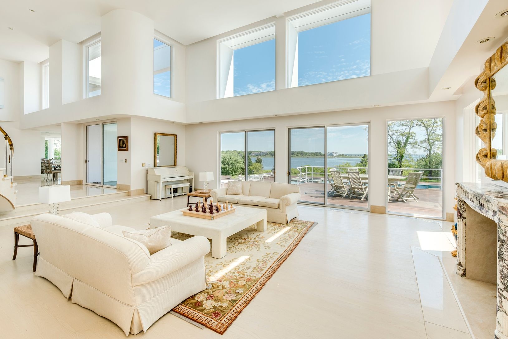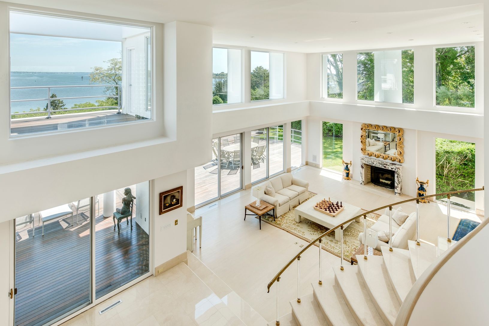 Rarely does property of this magnitude come on the market. The dramatic, modern, four bedroom, 7,000+/- sq. ft. home is on 2.8+/- acres with 288' of frontage on wide open waterfront. The bulkheaded property has a large boat slip, full size tennis court and a heated gunite pool. And, this very private and special home has the best address in Quogue.