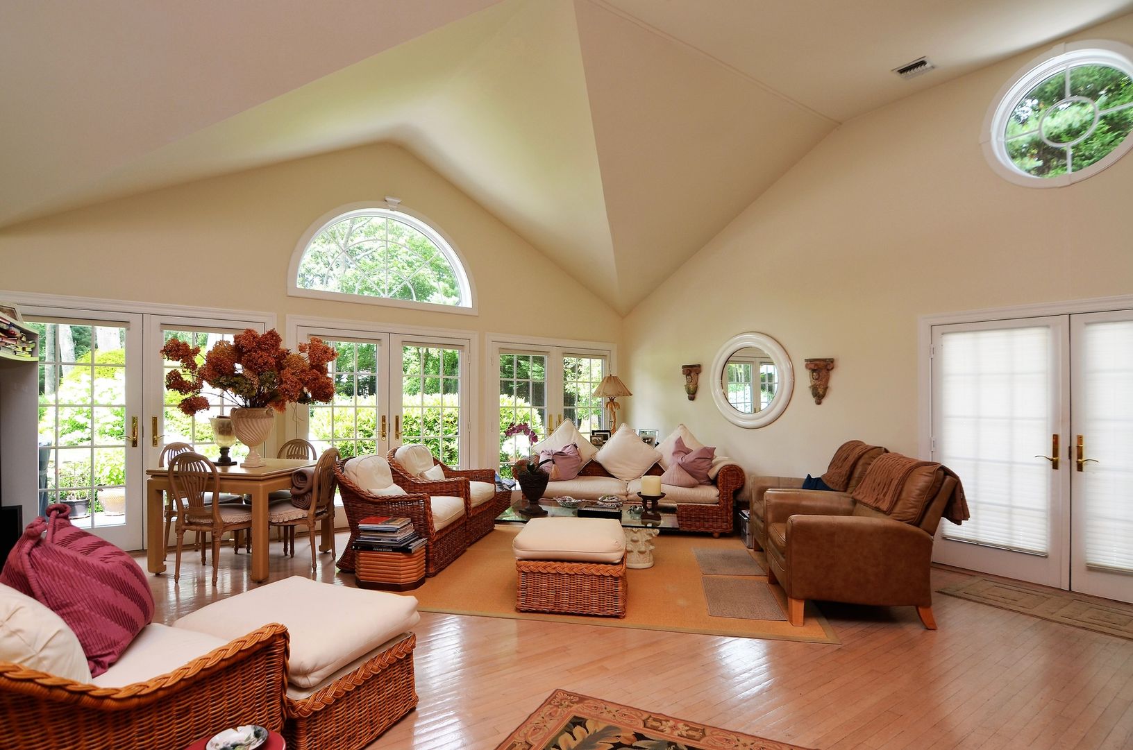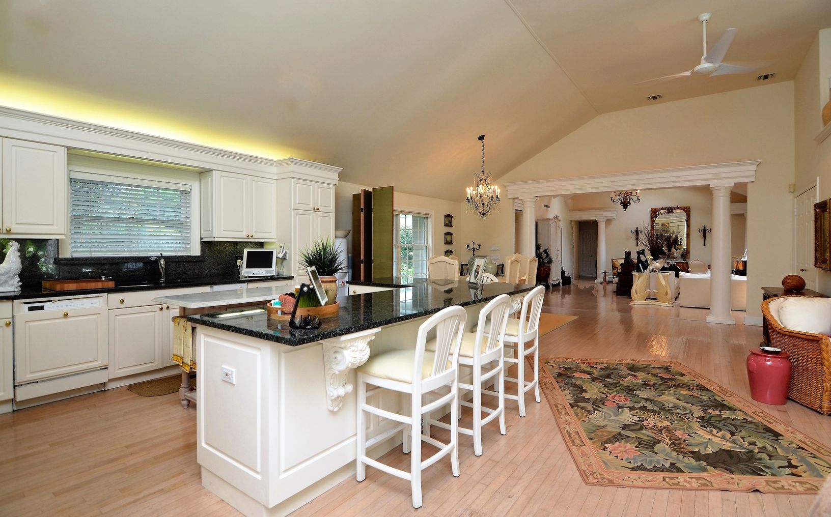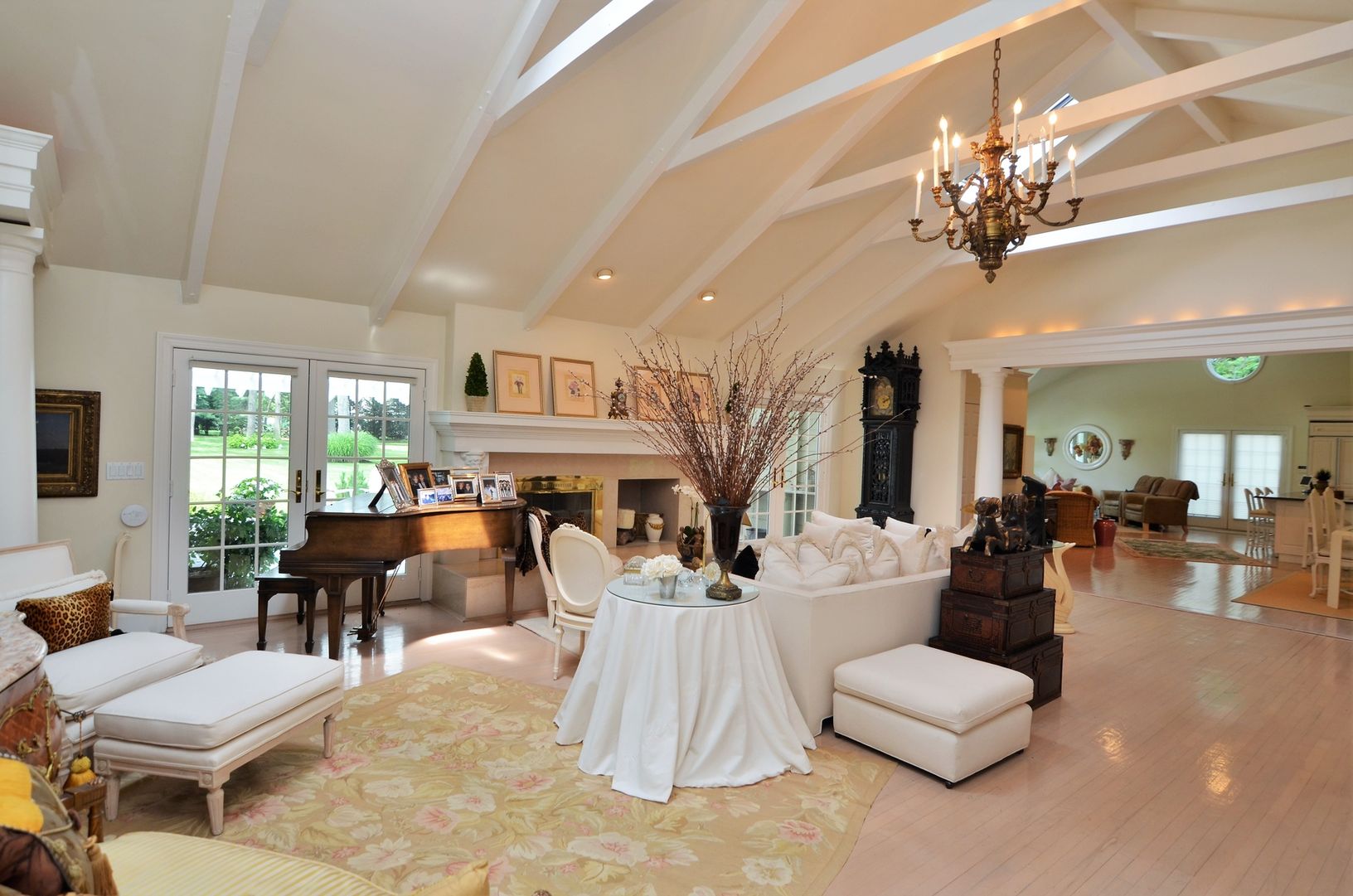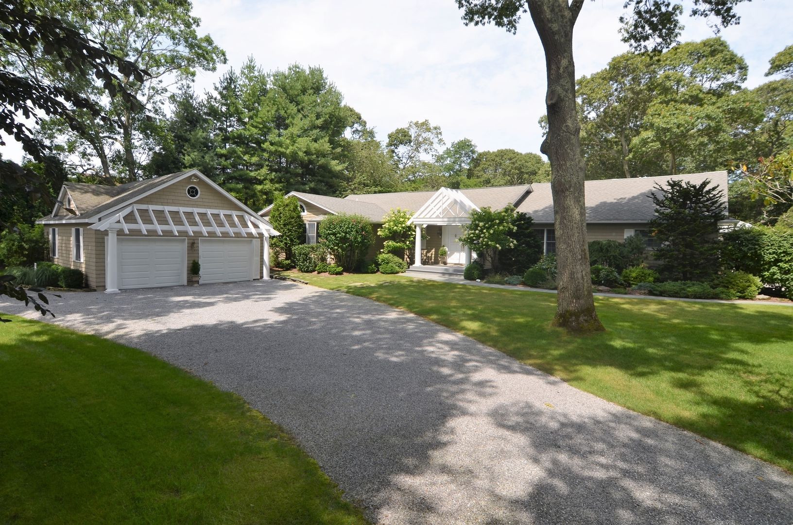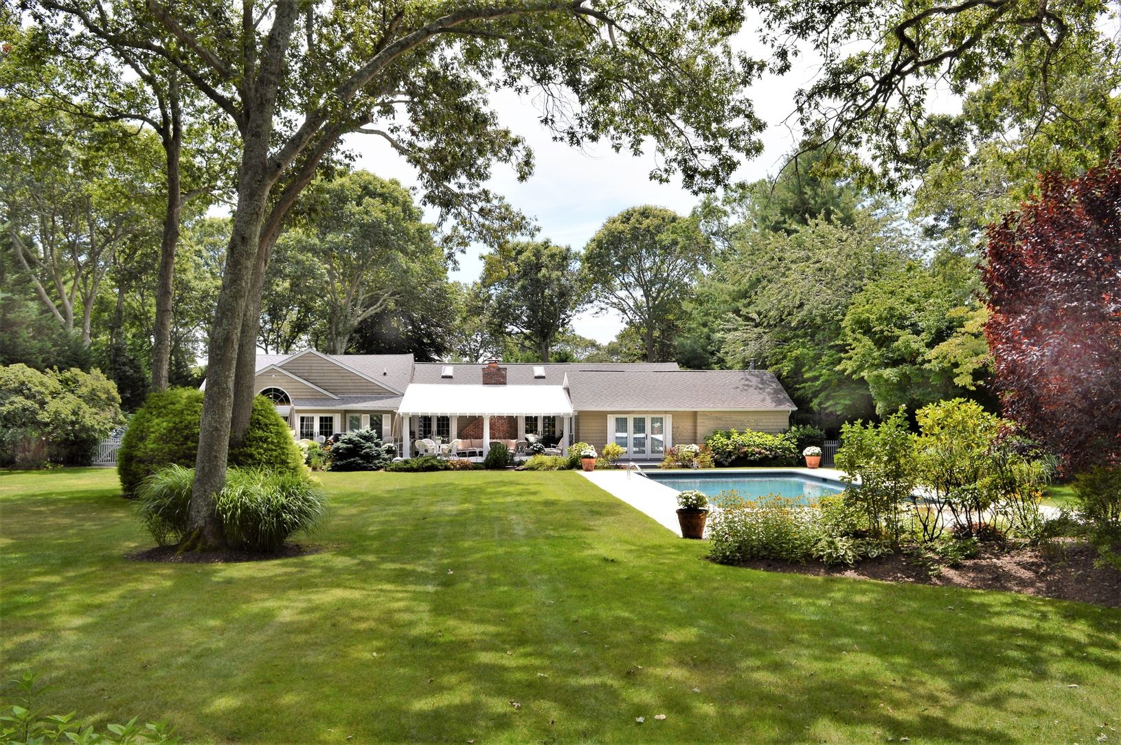 Quogue Style, Sprawling Ranch. This pristine & totally private, South of the highway property, boasts Park like Grounds. The Huge open floor plan includes a large living room with a Grand fireplace, a Chefs kitchen, Dining area and an open light filled Family room. The heated gunite pool is surrounded by lush landscaping and the beautiful Pergola terrace is ideal for outdoor entertaining.4 BRs & 4 Baths, Room for a tennis court, low ta