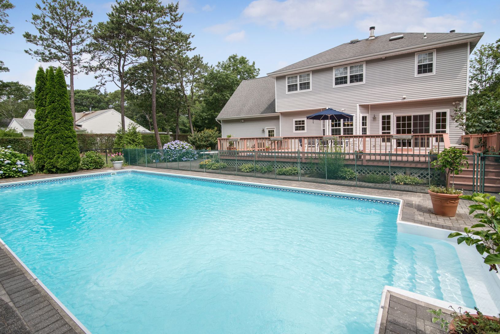 Pristine home located in Quogue School district. Enjoy a summer lifestyle or gracious year round living with this well maintained Post Modern. Soaring entry foyer, living room with wood burning fireplace, an open media room/den. Bright eat in kitchen with granite counter tops and a dining room. There is room for family or guests with a total of five bedrooms, including a master suite with marble bath and double walk in closets. Enjoy the outdo