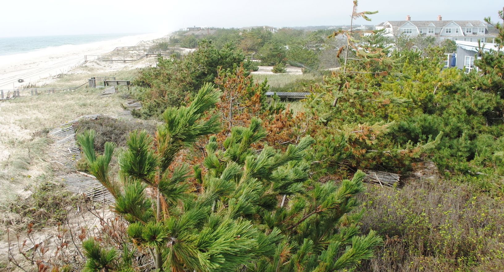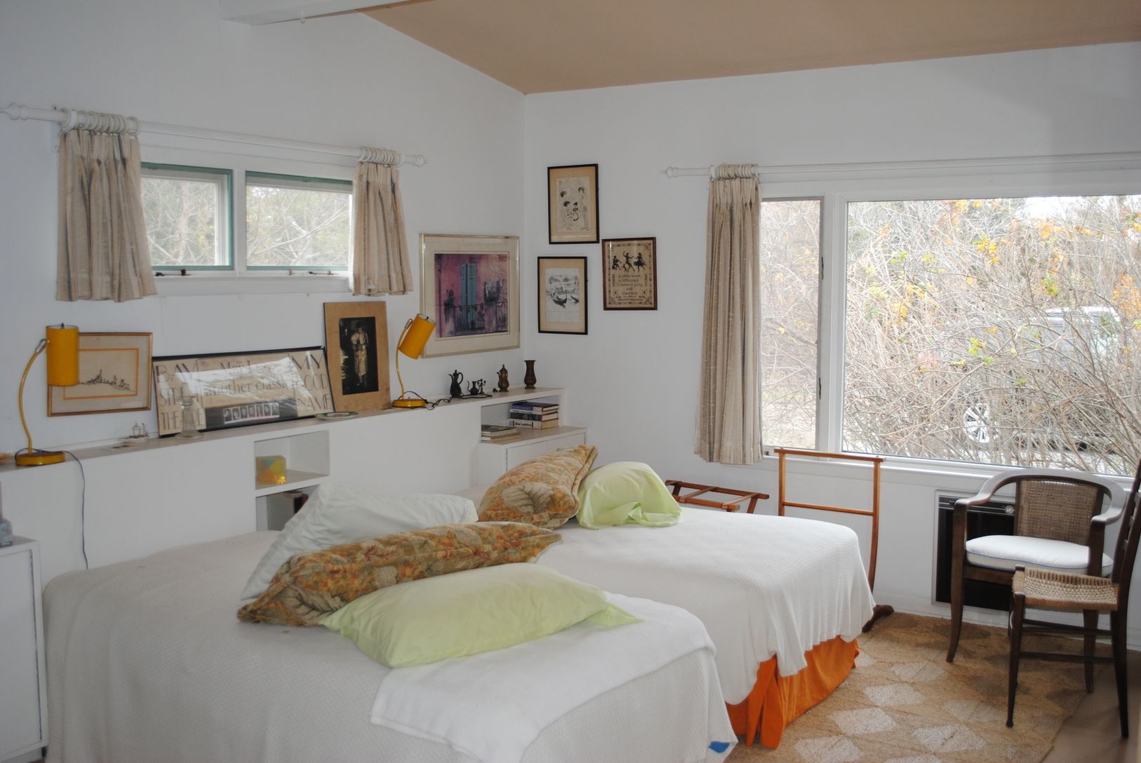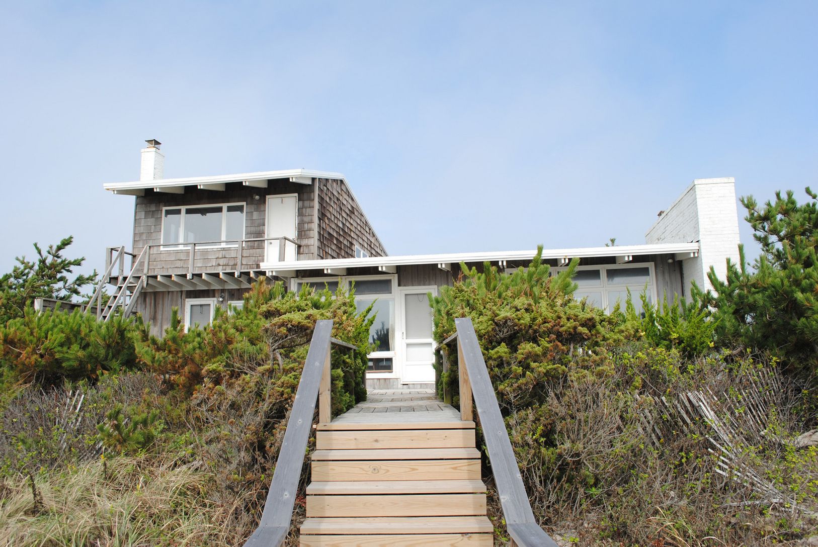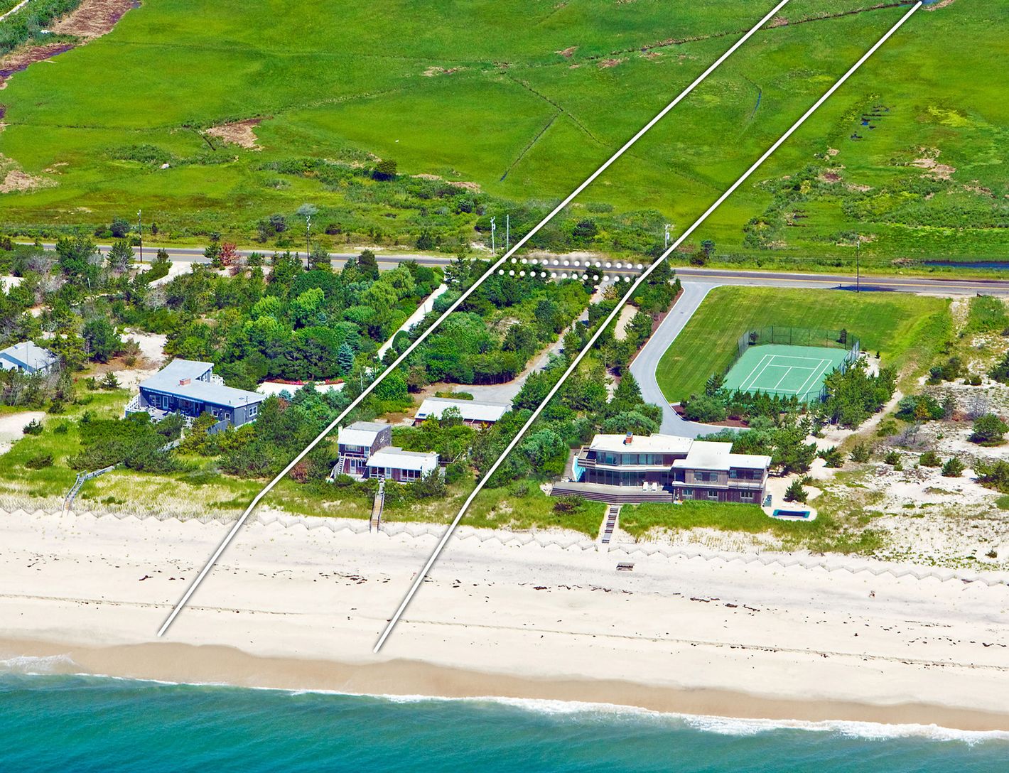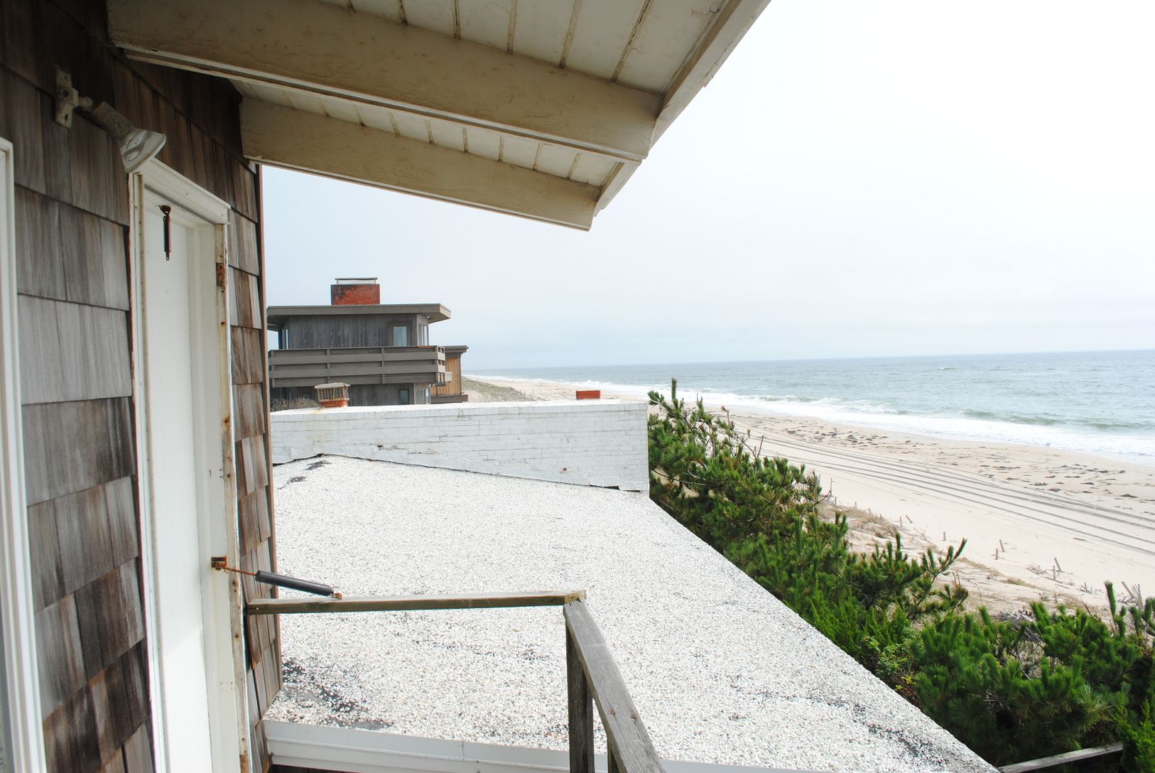 First Offering. Privately sited on 1.3 acres +/- on the ocean plus a separate 2.70 acre +/-lot across Dune Road affording unobstructed bay views. Sitting on top of the dune, the oceanfront beach house offers 3 bedrooms, 2 baths, living room with wood-burning fireplace, kitchen, ocean and bay side decks. A separate two car garage with a studio apartment also stands on the property. A serene setting with Old Quogue ambiance.