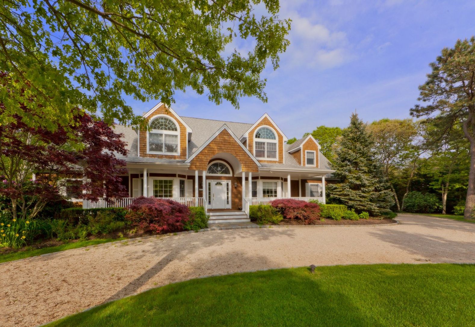 A home for all seasons in the Village of Quogue with beach rights and low Quogue taxes. Hidden behind a hedgerow, this