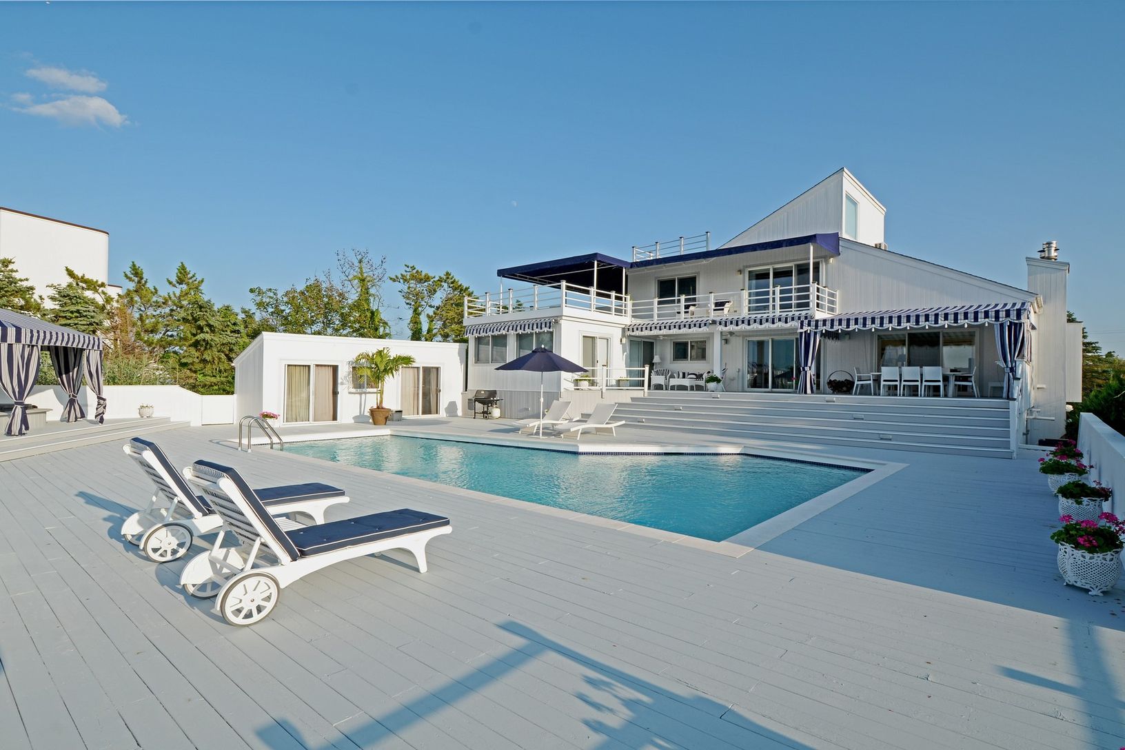 Introducing an enchanting, sophisticated modern beach house. Sited on over an acre, on the bay, along a naturally protected boat basin on Dune Road where Quantuck Bay meets the Quogue Canal. 130 feet of bulk-heading with dock awaits your boat(s) and water toys. Enjoy breathtaking views of bay & ocean.