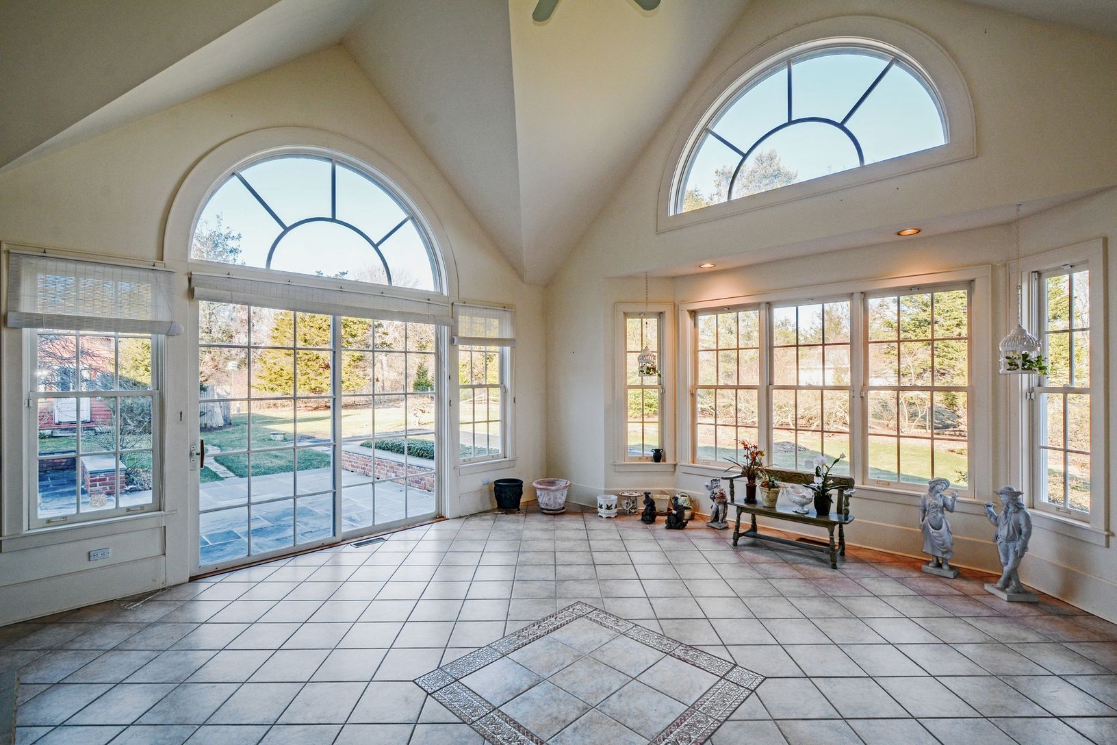 First time on the market. Large corner lot. Most living space on the first floor. Formal living room, 2 bedrooms...one with attached sitting room with fireplace that may be used as a 4th bedroom, eat in kitchen, 2.5 baths and huge cathedral ceilinged great room with fireplace on main floor. Upstairs, a bedroom & bath. Lovely grassed grounds surround the gunite swimming pool. Attached 2 car garage.