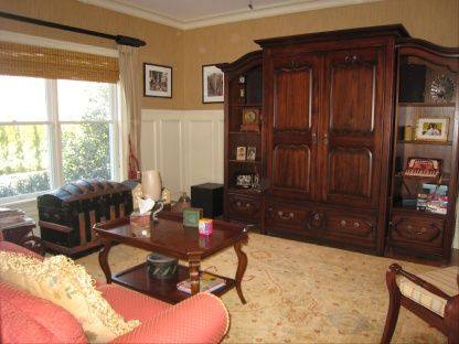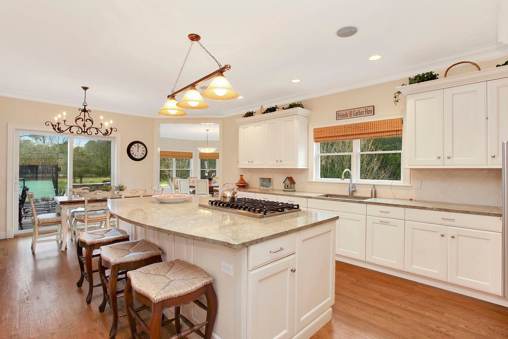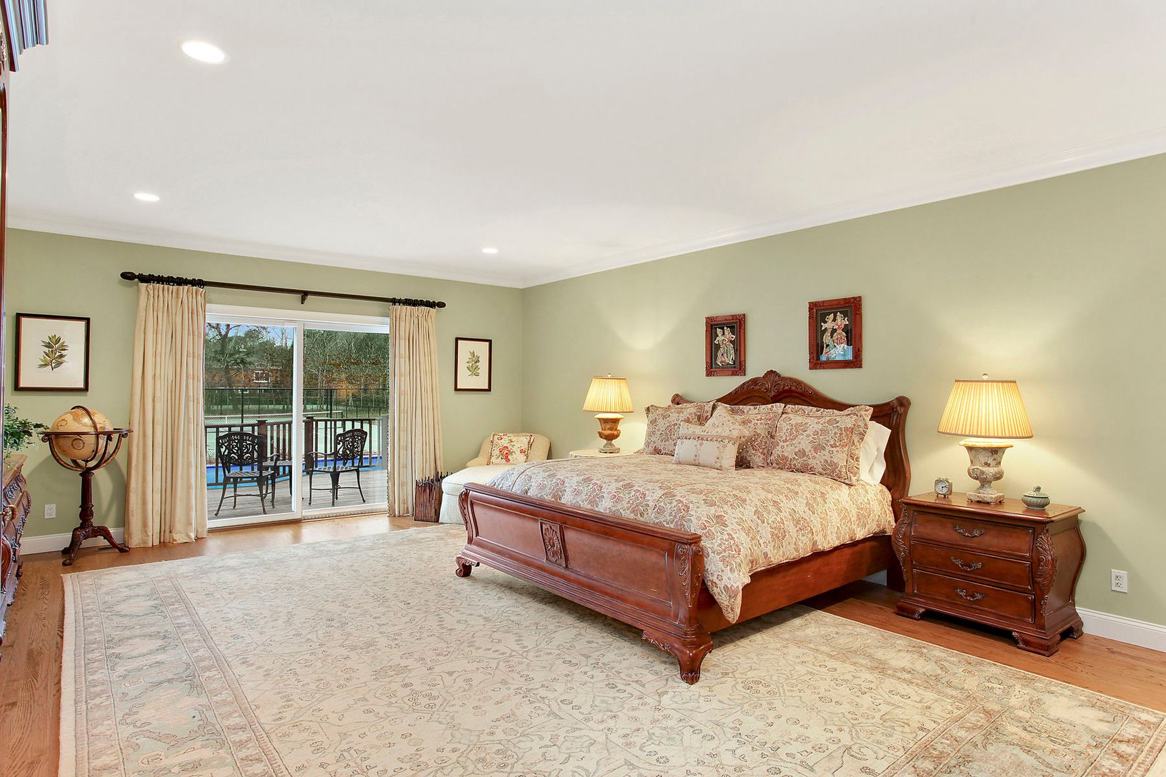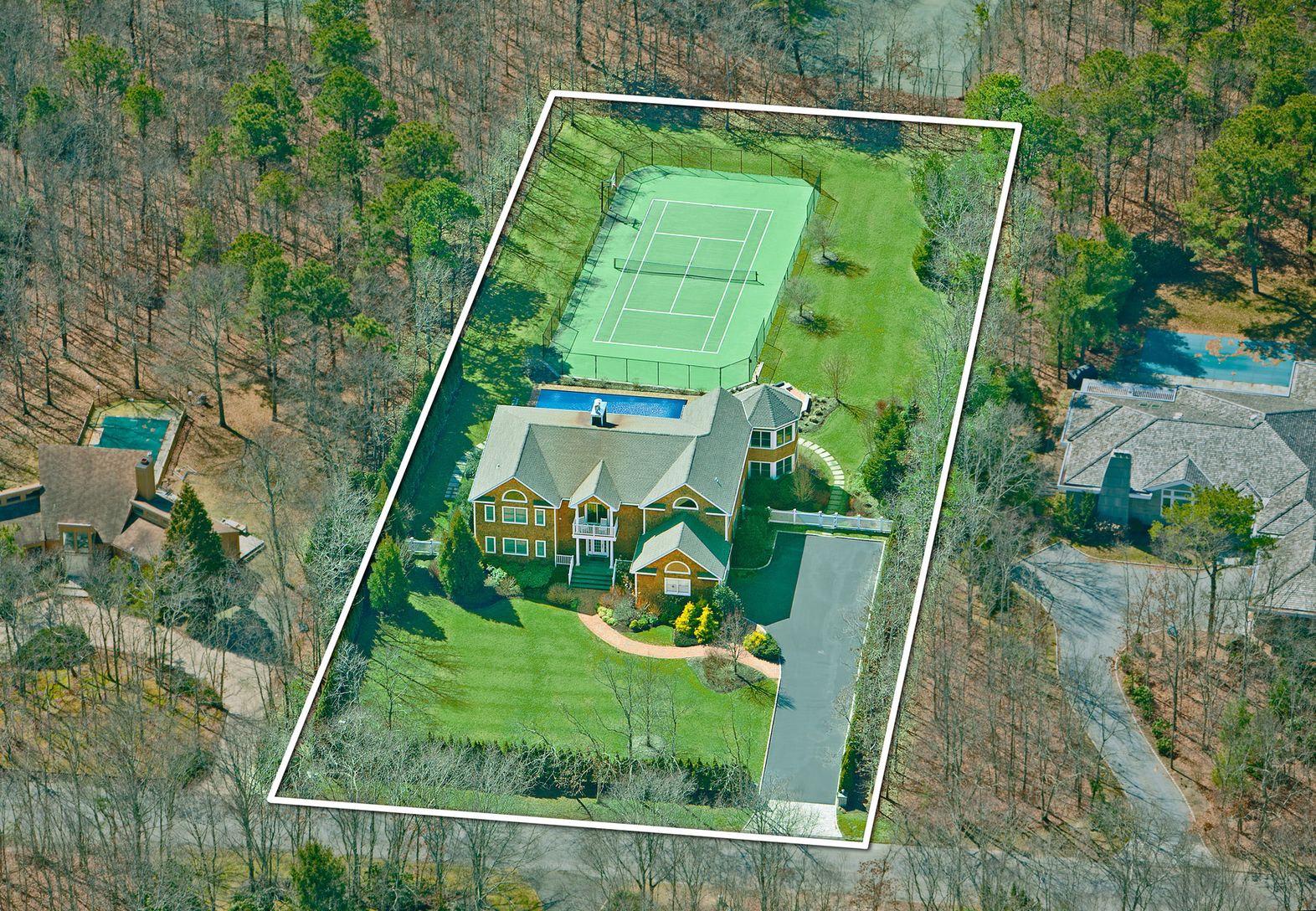 Built in 2006, this 5500 square foot elegantly styled traditional home with heated pool, tennis court, cabana bath, barbeque/bar seating area sits on an acre privately enclosed by beautiful landscaping and deep woods. The house is fantastic for entertaining with a two story great room leading out to the outdoor covered mahogany deck with seating for up to 40 people. The great room flows perfectly into the gourmet kitchen with top of the line a