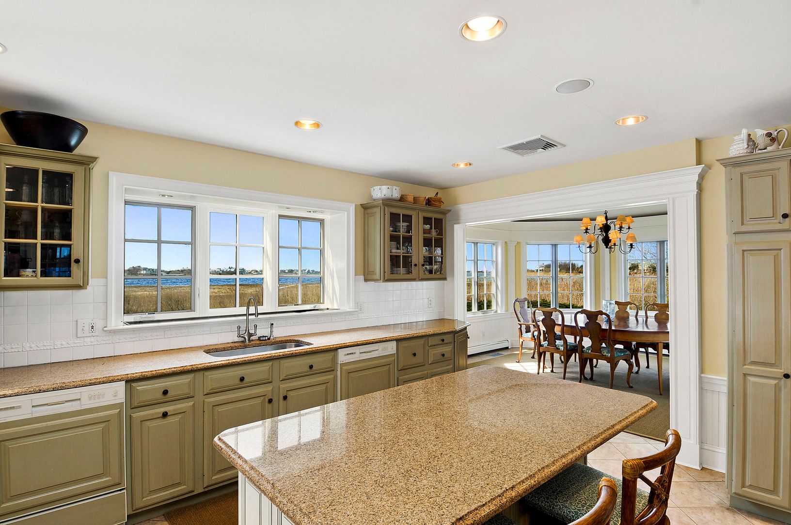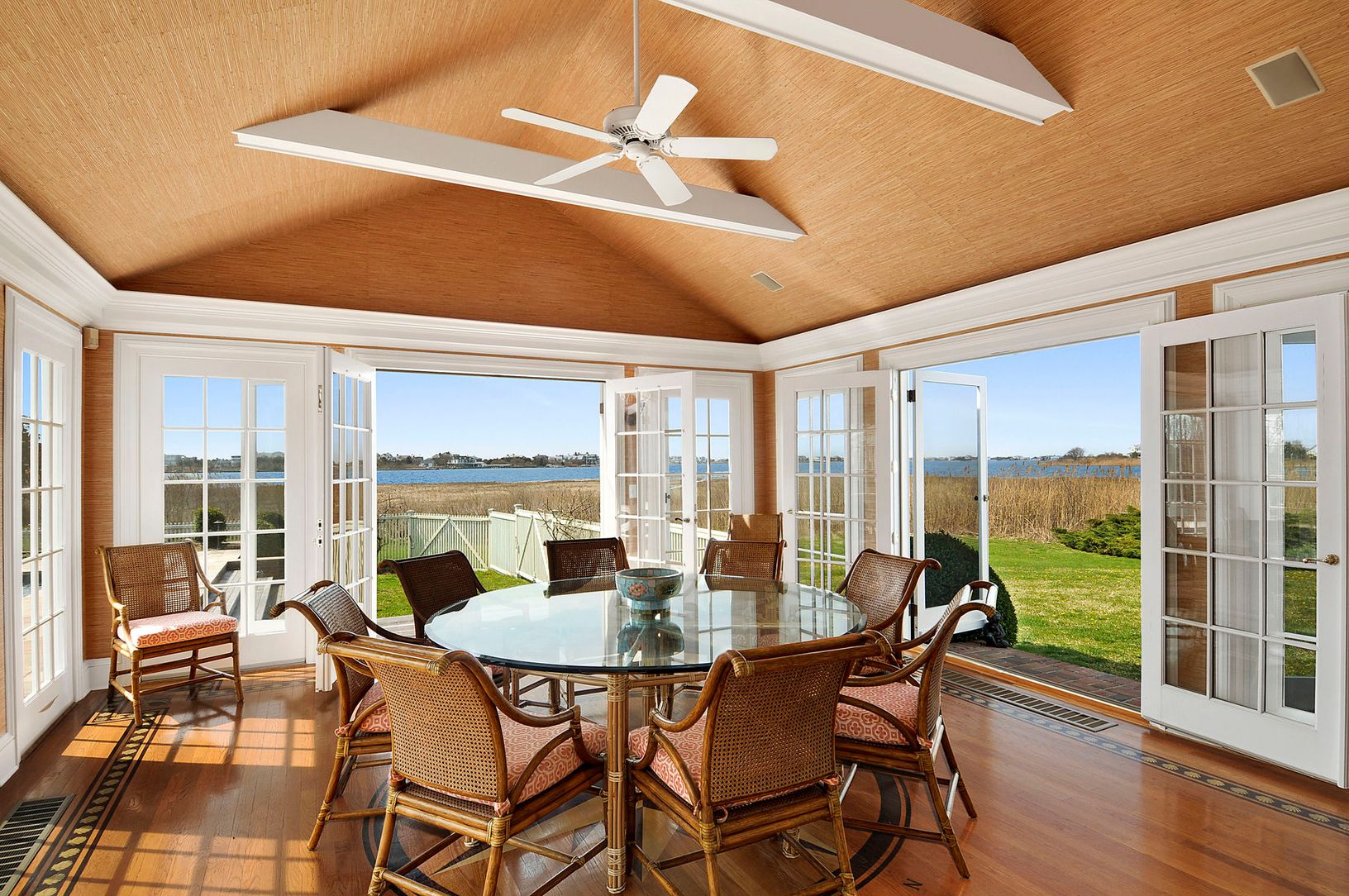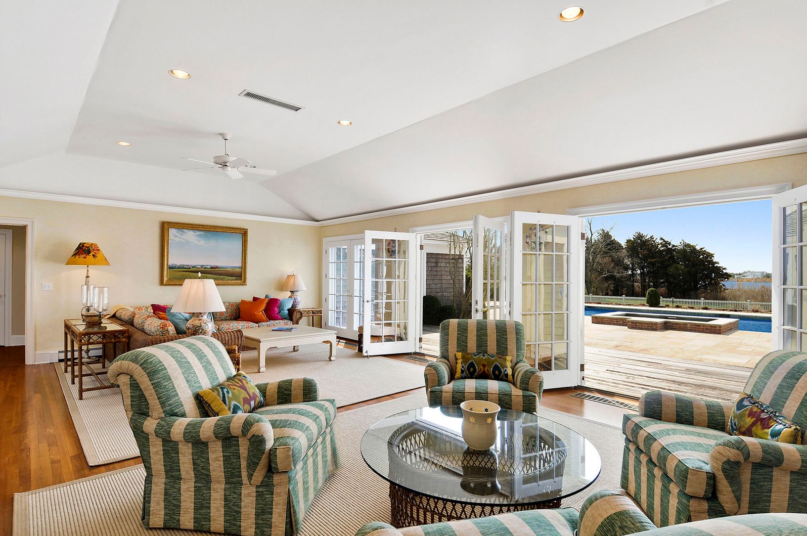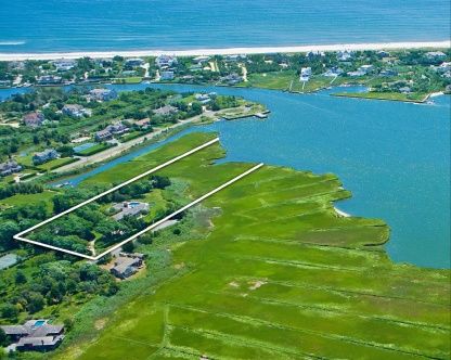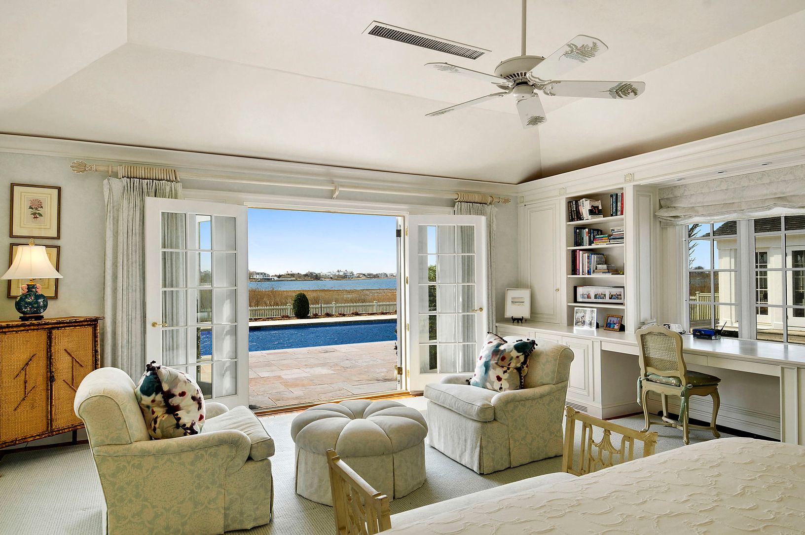 Extraordinary 4.6 acre Quogue waterfront compound with oversized heated Gunite pool and hot tub, tennis court, extensive gardens and expansive patios for intimate or grand scale entertaining. Water side master suite with his and her baths and office and additional 5 guest en-suite bedrooms. Light-drenched gourmet kitchen, two dining rooms, large living room with fireplace and French doors with access to water side patio and family room. A g