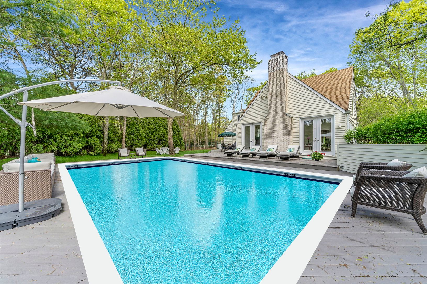 Step into a world of luxury and style with this postmodern gem nestled on a peaceful 1-acre cul-de-sac in Quogue Village. This exquisite home combines four bedrooms and 4.5 bathrooms with the exclusive use of a tennis court and swimming pool, defining it as the ultimate summer retreat.