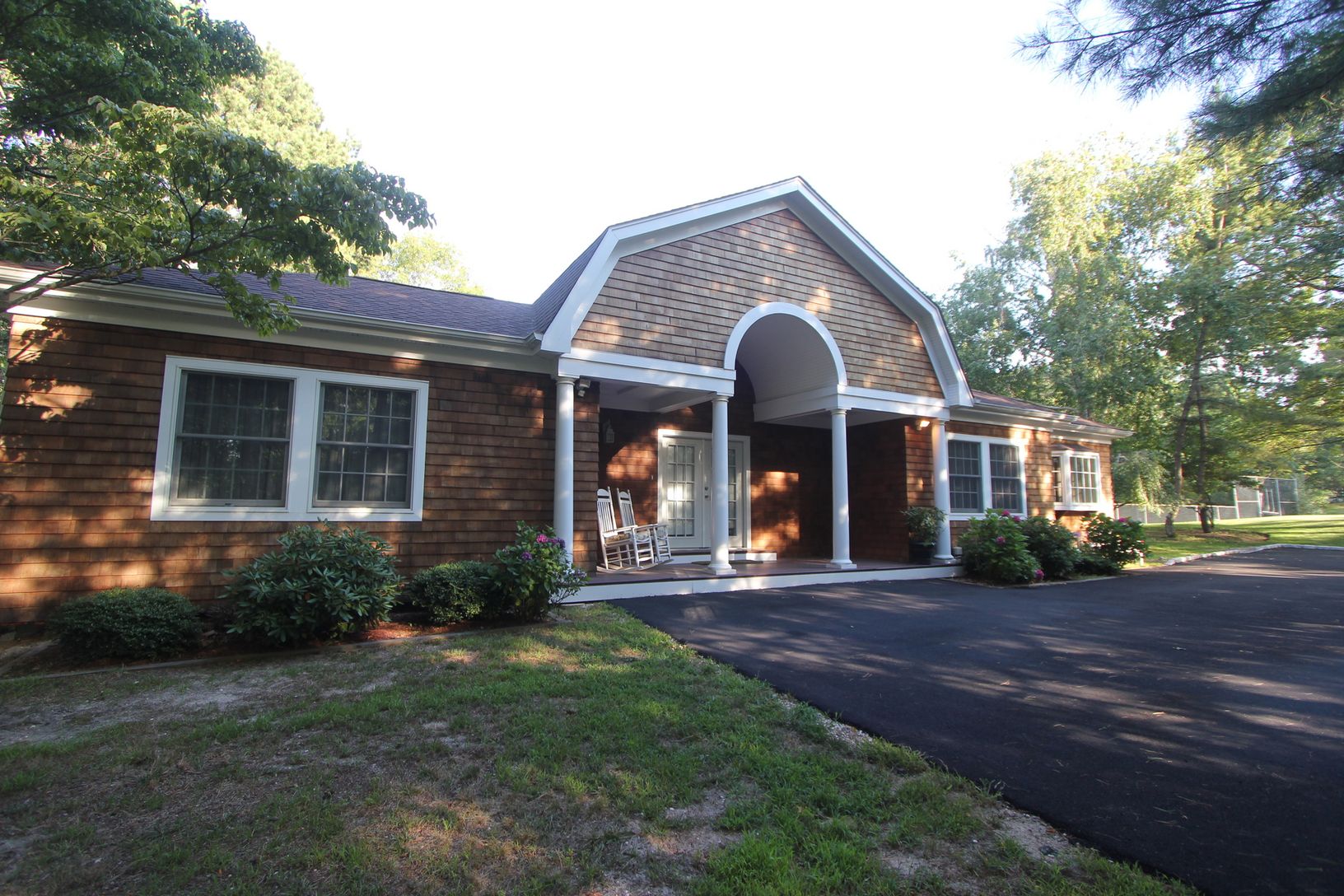 Located at the end of a delightful tree lined cul de-sac, this Quogue Village home has it all. Enjoy spacious decking over looking a 20 by 40 heated pool and a picnic area. A covered outdoor area allows you to barbeque and entertain without any worries about rain or too much sun. Har-tru tennis, a separate basketball half-court and outdoor shower await you. A large side lawn is ready for volleyball or a light soccer game. The home was recen