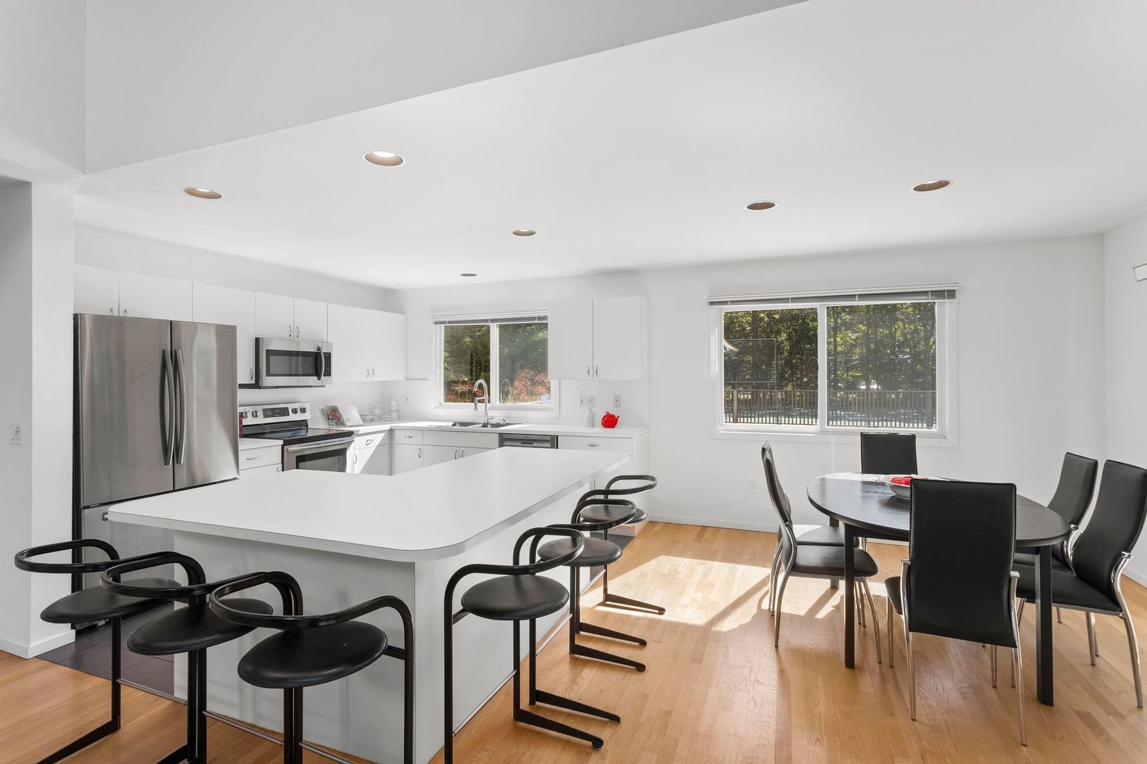 Set on 1.48 +/- acres, this exceptional value located in desirable Quogue Village won't last. This well maintained Contemporary home offers an open and airy floor plan with vaulted ceilings, large great room, spacious dining and fully equipped chef's kitchen with new appliances. This five-bedroom, four-bath home offers your choice of first or second floor master suites and spacious living for family and friends. Relax on your mahogany deck aro