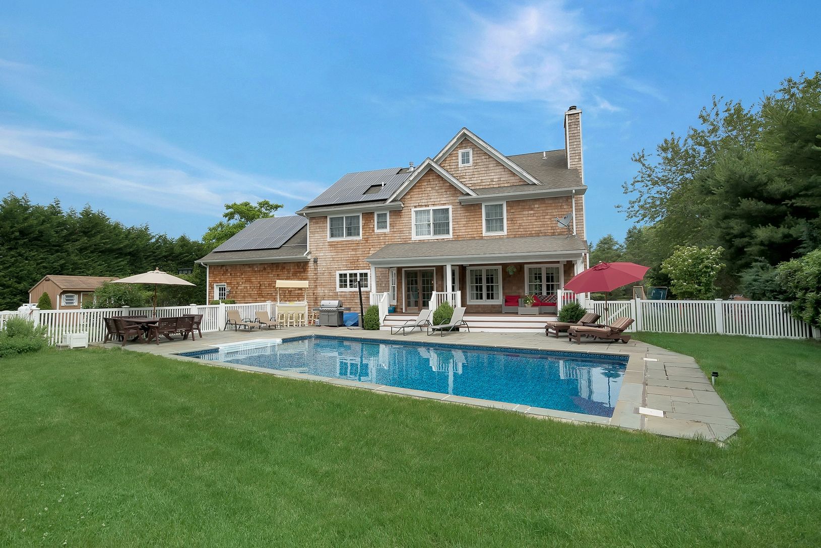 Lovely Post Modern in Quogue is ideal for your summer rental 2020. Main floor is spacious and sun-filled with a handsome kitchen, spacious dining room and den. An oversized master bedroom en suite enjoys its own sitting area and fireplace. Three additional, generous bedrooms along with 2 full baths complete the second floor. Finished basement with gym offer great added space. An inviting, manicured yard enhance the full sized, heated pool. A c
