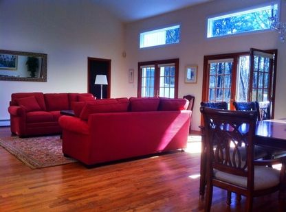 This bright, beautiful contemporary Hamptons hideaway has all the makings for comfortable resort-like living with lush grounds, a heated swimming pool, large lounging deck and clay tennis court. Makes a great summer rental! Set on 1.1 acres in a quiet yet convenient location, this expansive 2800 square foot home is good for entertaining both inside and out. The cheerful open floor plan affords a feeling of airiness and the ideal flow for gathe