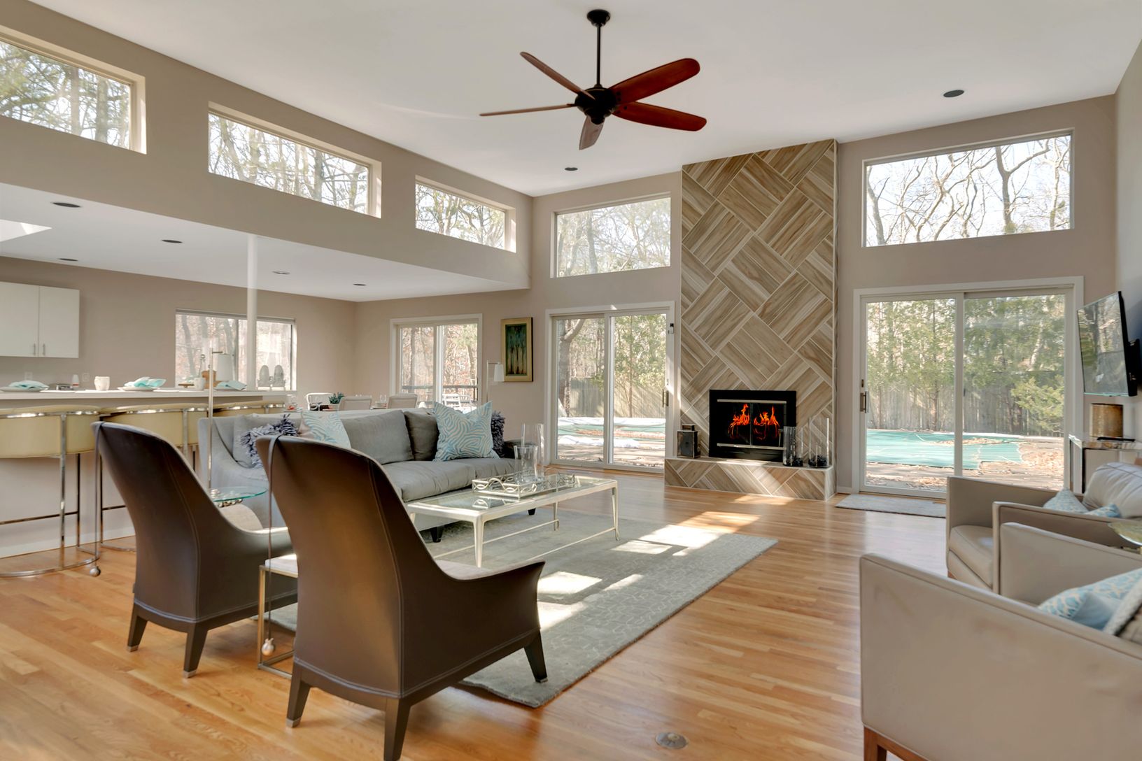 Think Summer in this freshly remodeled, contemporary with chic new furnishings and natural light filled rooms throughout its open floor plan. Great room with fireplace and second floor junior master suite overlooks the heated swimming pool. Four bedrooms in total with entertaining in mind. Quogue Village beach rights and ease ability to area activities. Summer awaits!