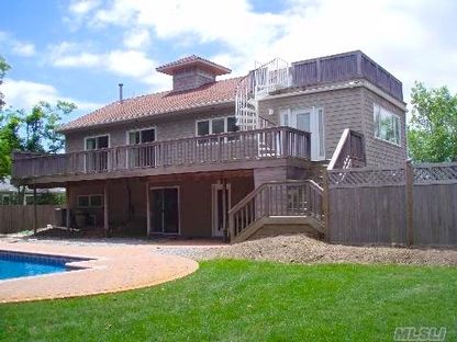Located on a secluded Bayfront lane, in Remsenburg, with multi million dollar homes. This renovated traditional offers 4 bedrooms, 3 full baths with new swimming pool and lovely back yard. This home is steps from the bay. Enjoy cool breezes all summer long from Moriches Bay and enjoy fantastic sunsets from the roof deck. This property has central air conditioning. A Right of Way to docking and a sandy bay beach access, rounds out this great bu