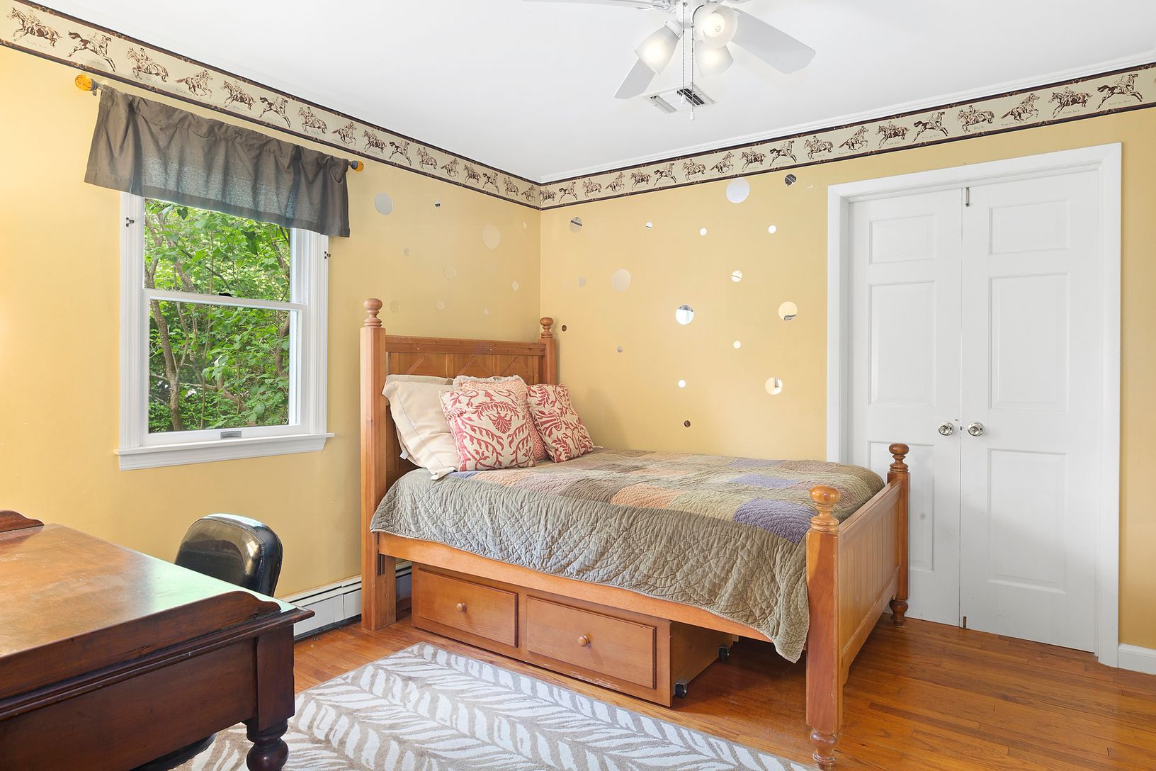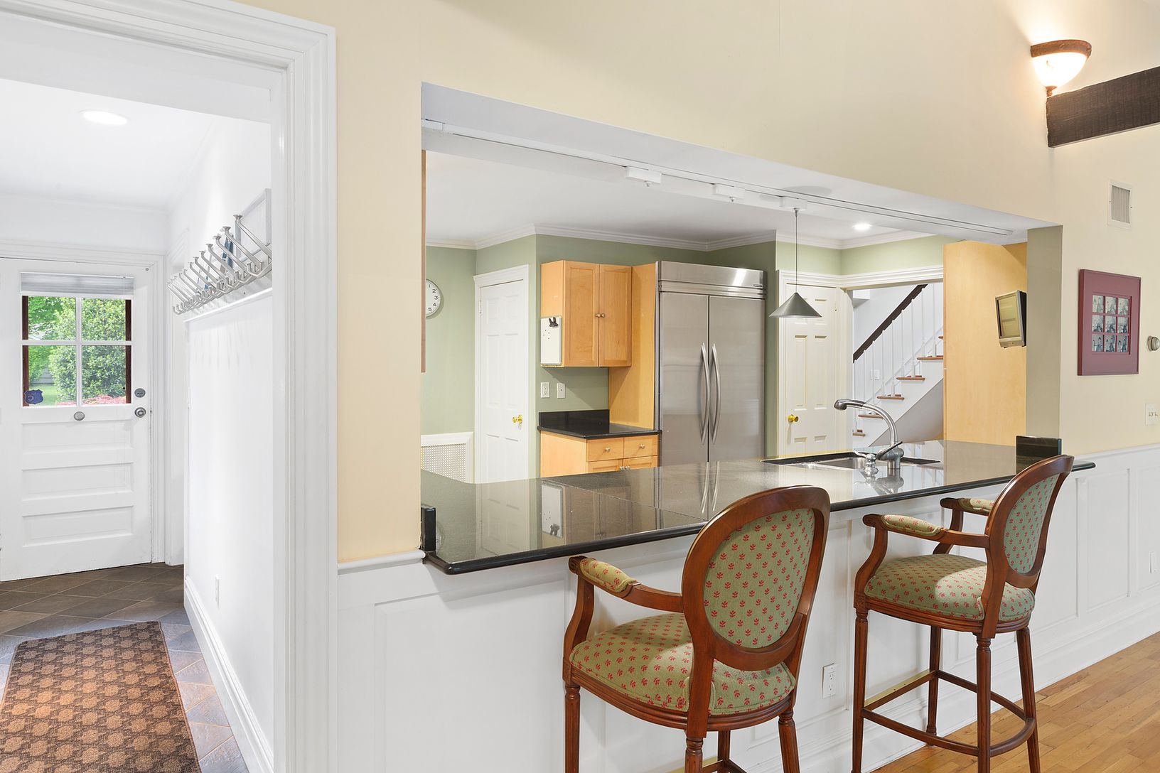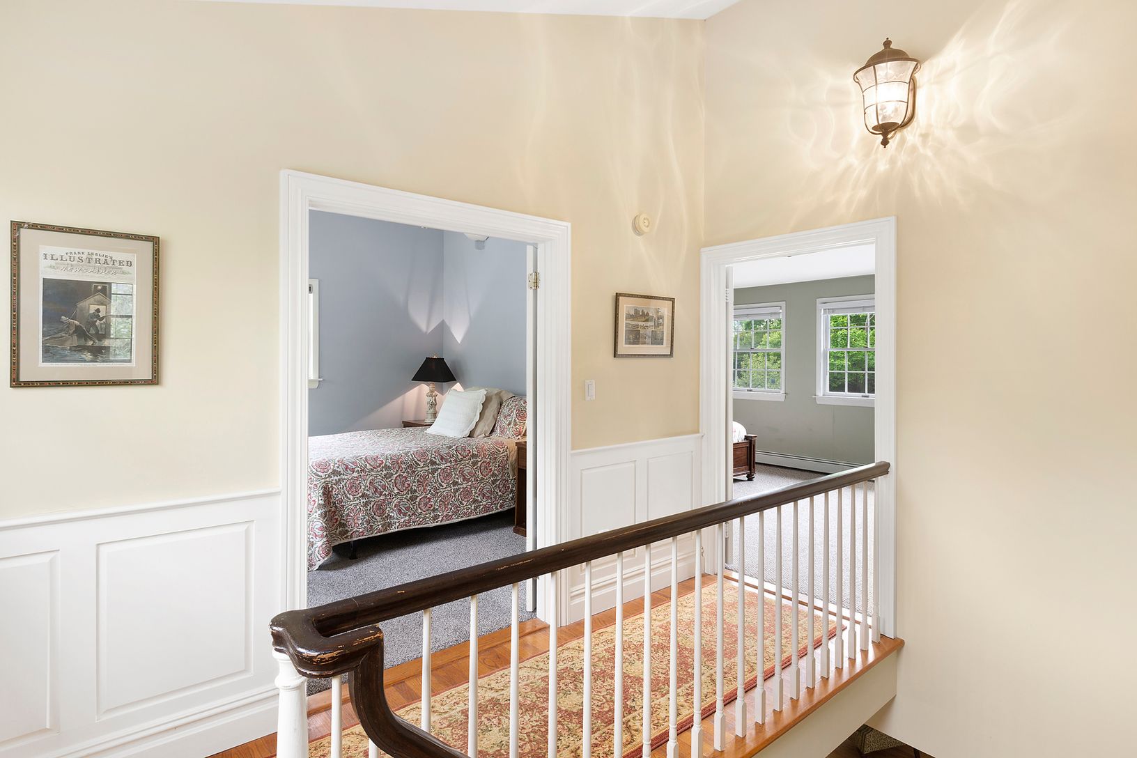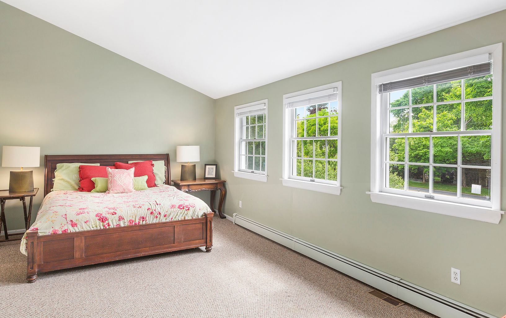 This 5-bedroom home sits on a lushly-landscaped property in Remsenburg, and features an especially fabulous backyard, complete with pool, hot tub, a har-tru tennis court, an entertaining area with built-in speakers, a large koi pond and some giant pine trees. The house itself offers a sunken great room across the back, with a seating and dining area just off of the open kitchen, a cozy den with pellet stove, and a large master suite with luxu