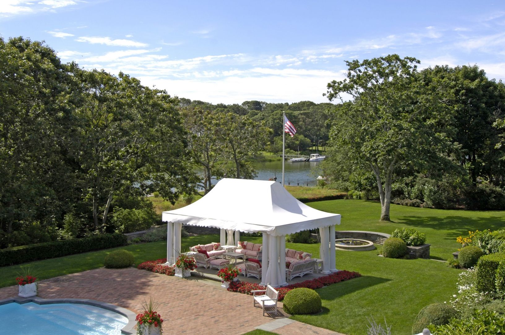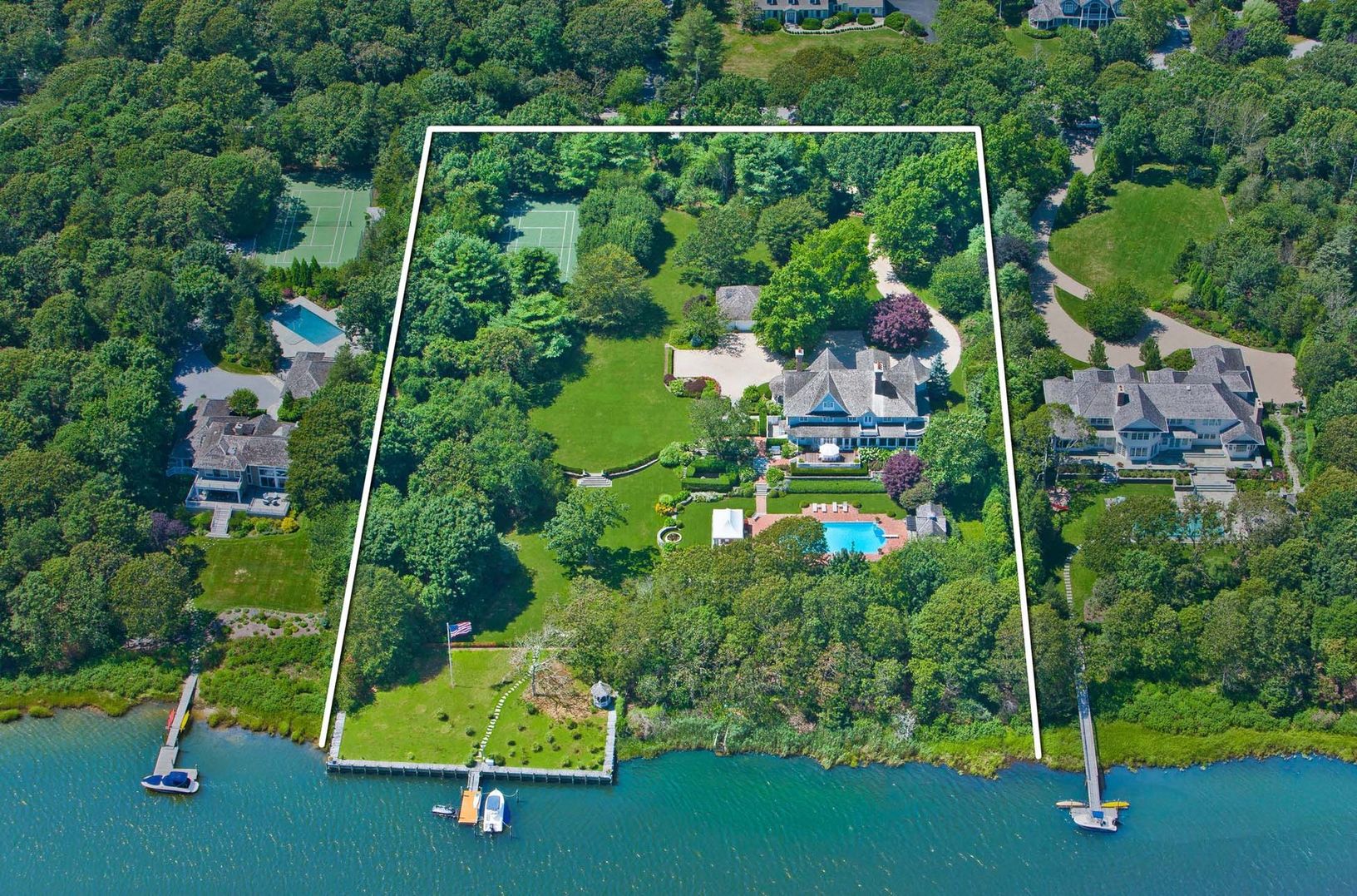 The waterside complex includes the immacculate 5 bedroom home, oversized heated gunite pool with Roman edge, all weather tennis court, pool house with kitchen a