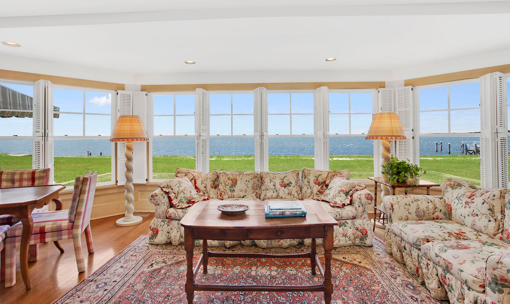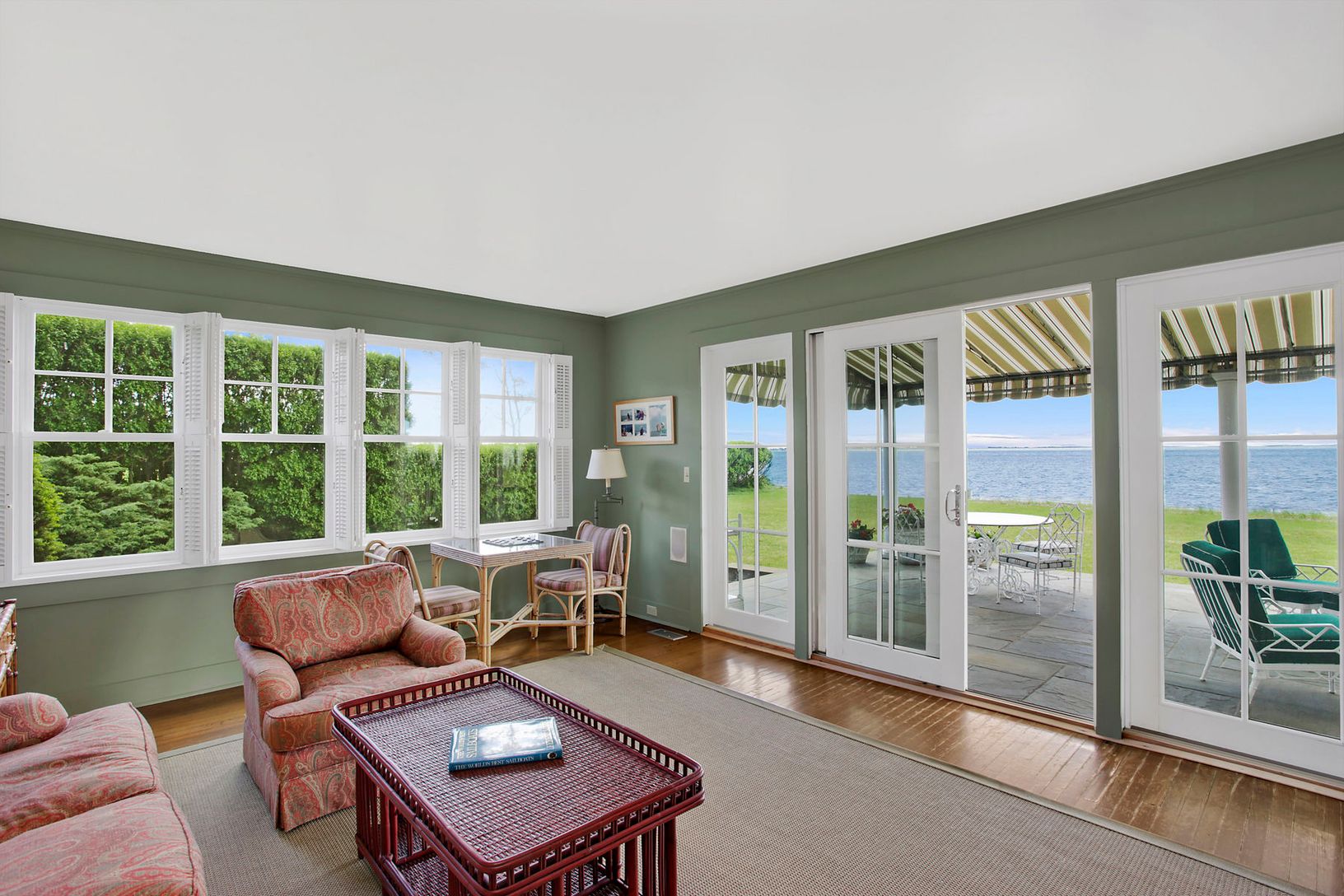 Tucked away on a quiet lane in Remsenburg is this Hamptons classic, nestled on three acres and offering nearly 5,000 square feet of living space. A long drive leads to this Bayfront home with six bedrooms and four baths, featuring 200 feet of bulkheading. As you enter through the foyer off the porte cochere, you will find a grand living room with both a fireplace and French doors overlooking the bay. Following the living room is a den or poss