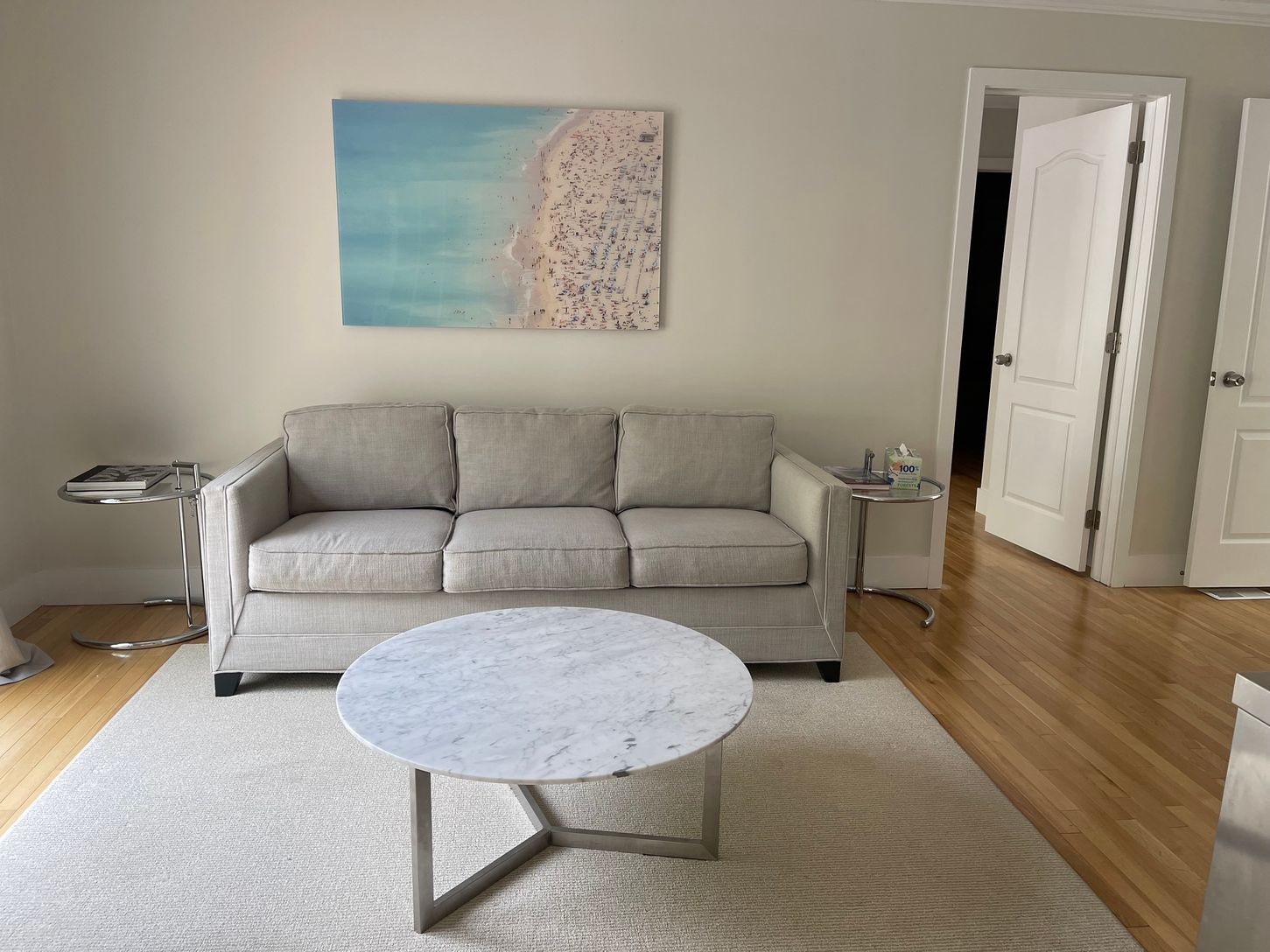 Inside, the home is tastefully furnished with modern pieces from Room & Board, Design Within Reach, and Res
