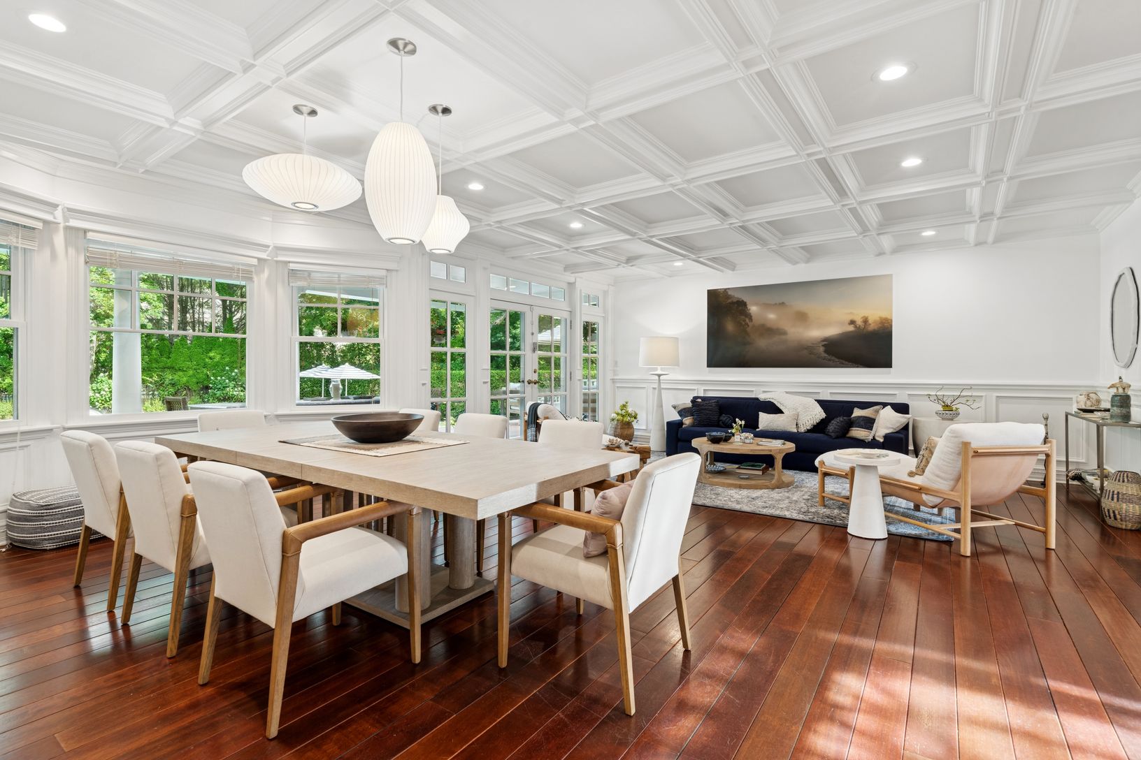 Nestled in the peaceful hamlet of Remsenburg-renowned for its privacy, charm, and proximity to Westhampton Beach-this newly updated residence offers over 4,600 sq ft of elegant living space on a beautifully landscaped half acre. Designed with summer in mind, the property features a saltwater heated pool, inviting covered porches perfect for al fresco dining, and a fire pit for evening gatherings under the stars. Inside, a chef's eat-in kitchen