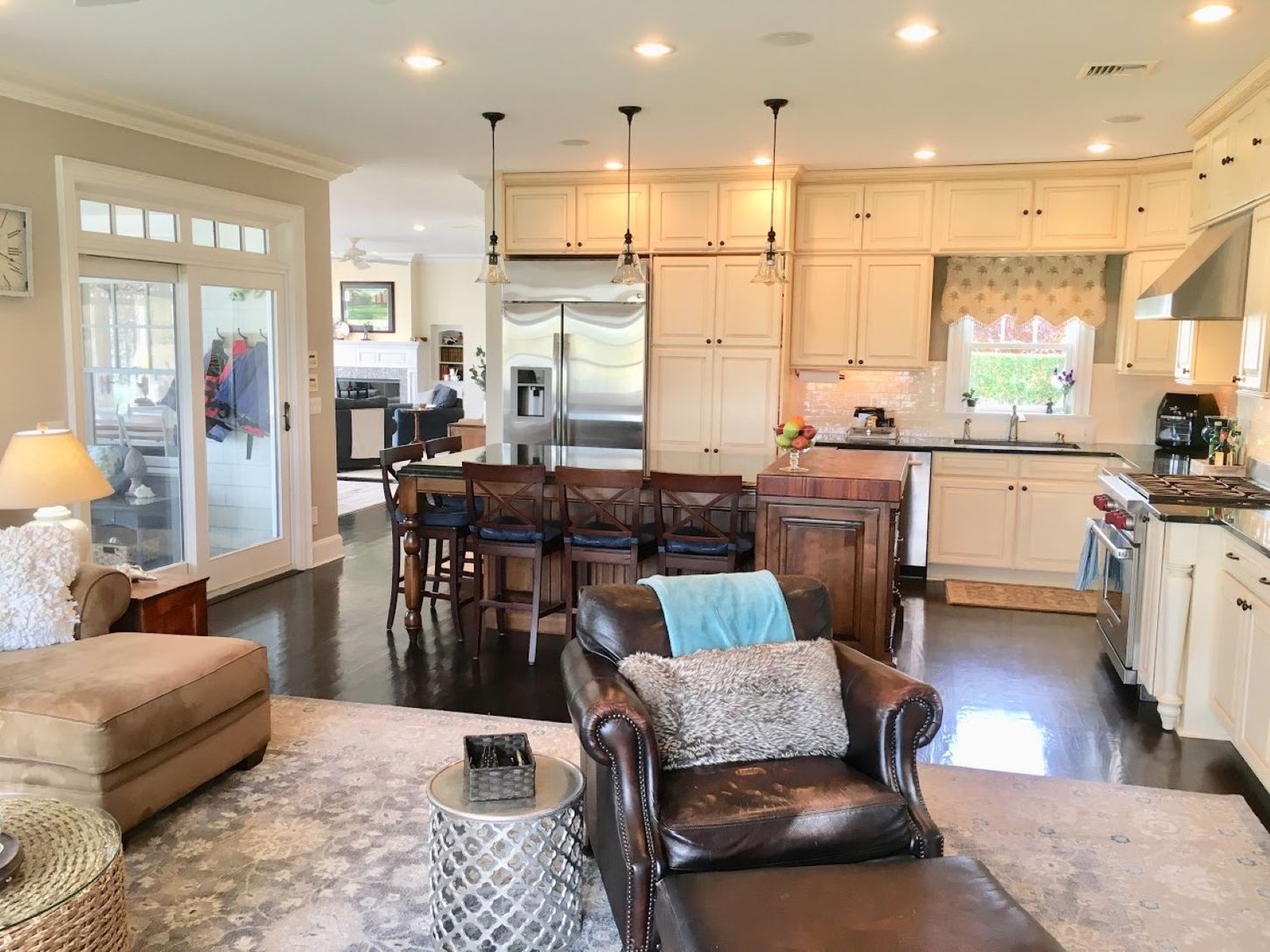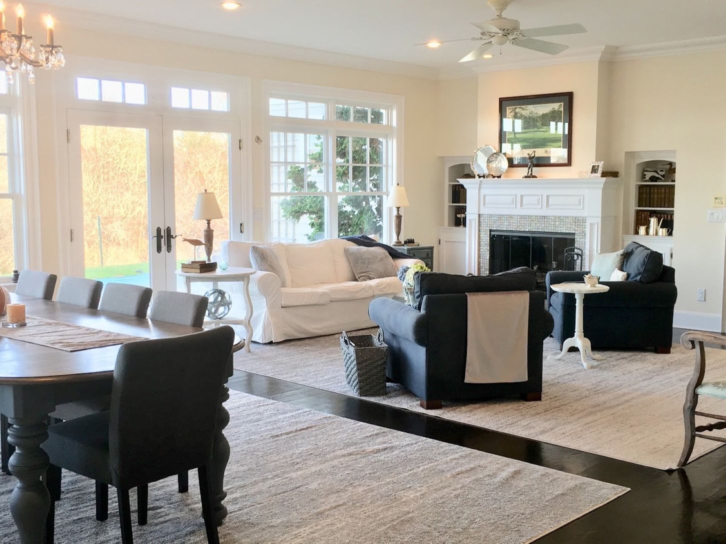 Lovely new modern traditional style home, consisting of six bedrooms and five and a half baths located south of the highway. This open interior plan has a bedroom on the main level, kitchen with den, multiple fireplaces, office, beautiful living room and screened porch with water views, steam shower, heated pool, hot tub and many other amenities. Professional kitchen, terrific views from the interior and exterior of the home with awesome wes