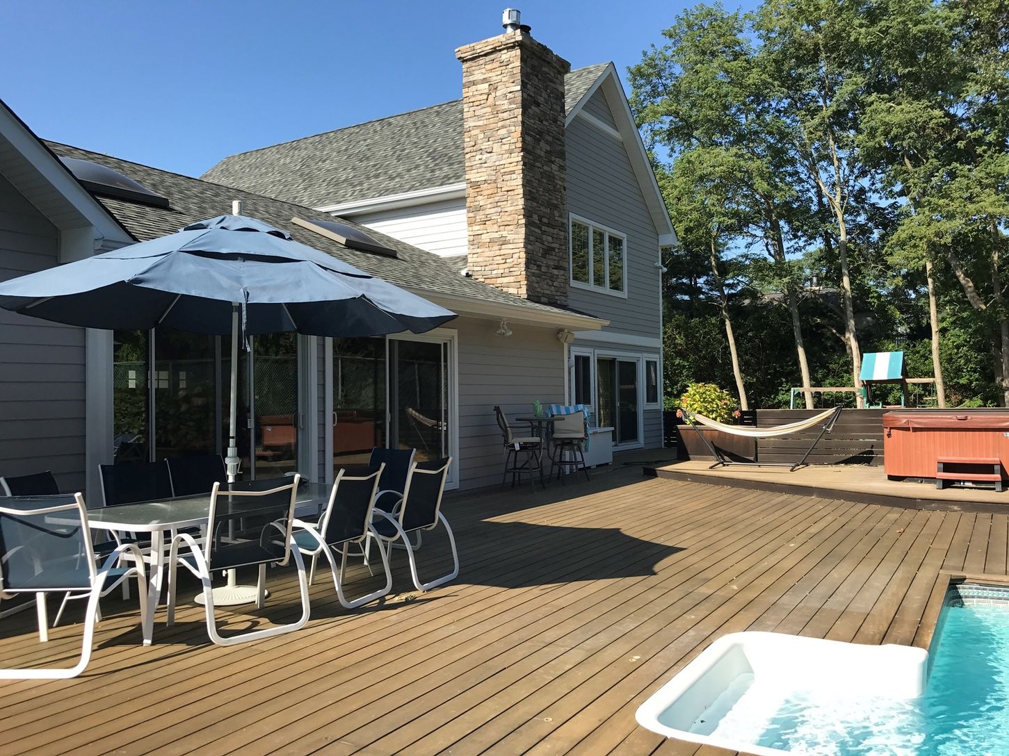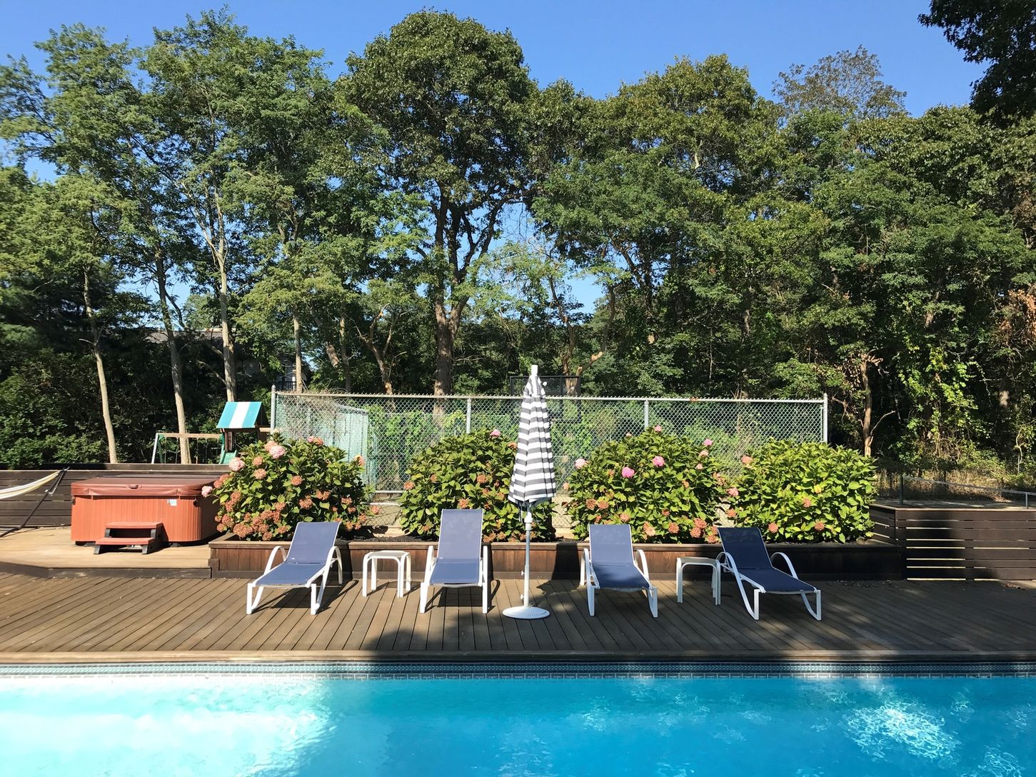 12 Sandys Lane in Remsenburg was very recently renovated. With new kitchen, baths, floors, and more, this home is ready for your summer vacation. The first floor boasts a great room with living room, dining area, and kitchen. Additionally, there are two master suites, two additional bedrooms, and one full bath on the first level. The second floor includes a master suite and loft area. Outside features a heated pool, hot tub, tennis court, and