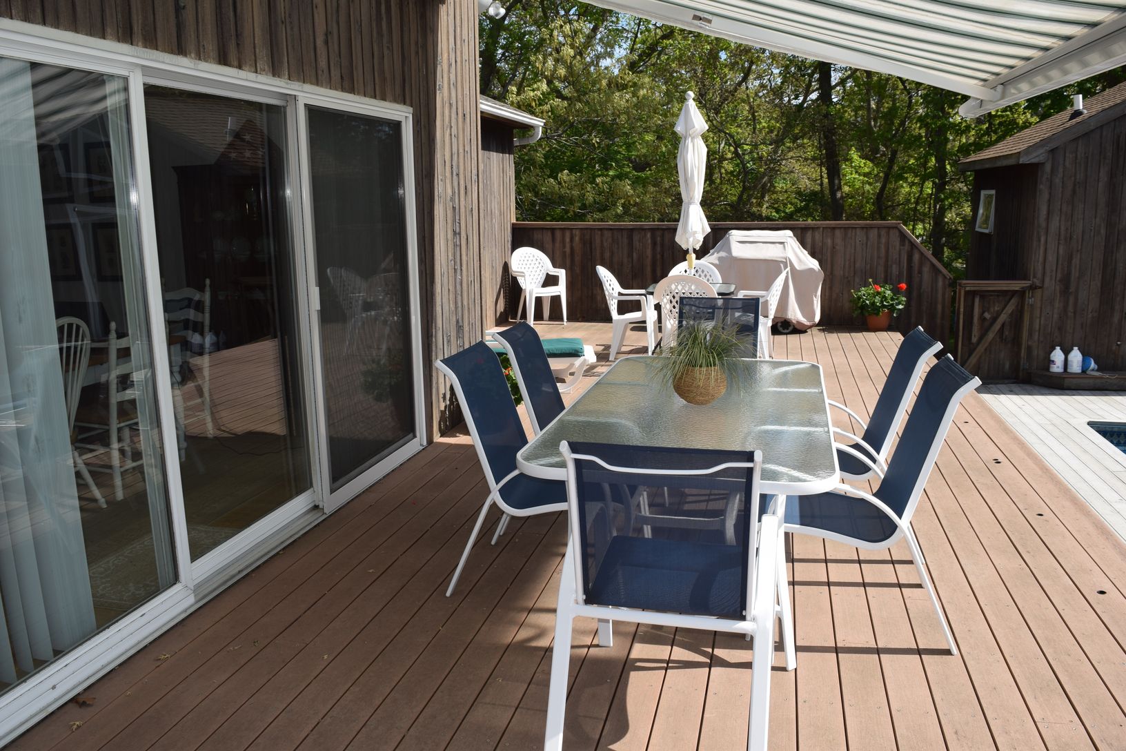 outdoor shower, pool/guest house with 1/2 bath and central air conditioning. There is also a protect-a-fence around the pool.