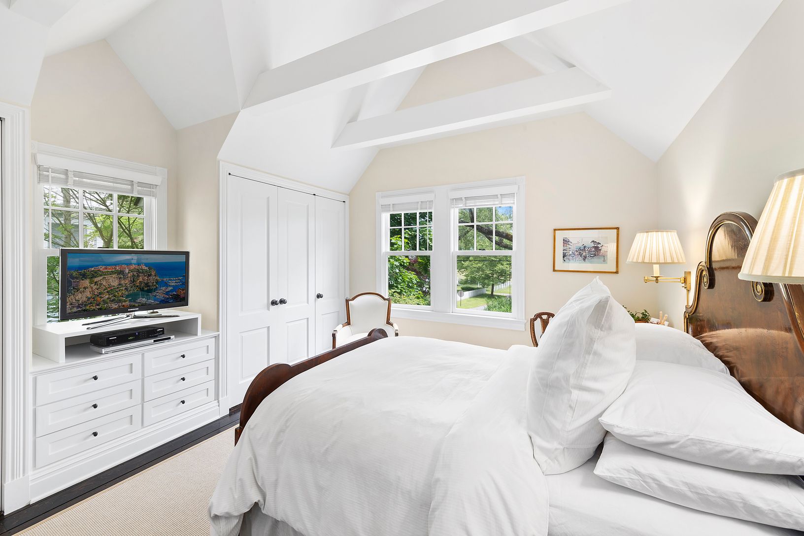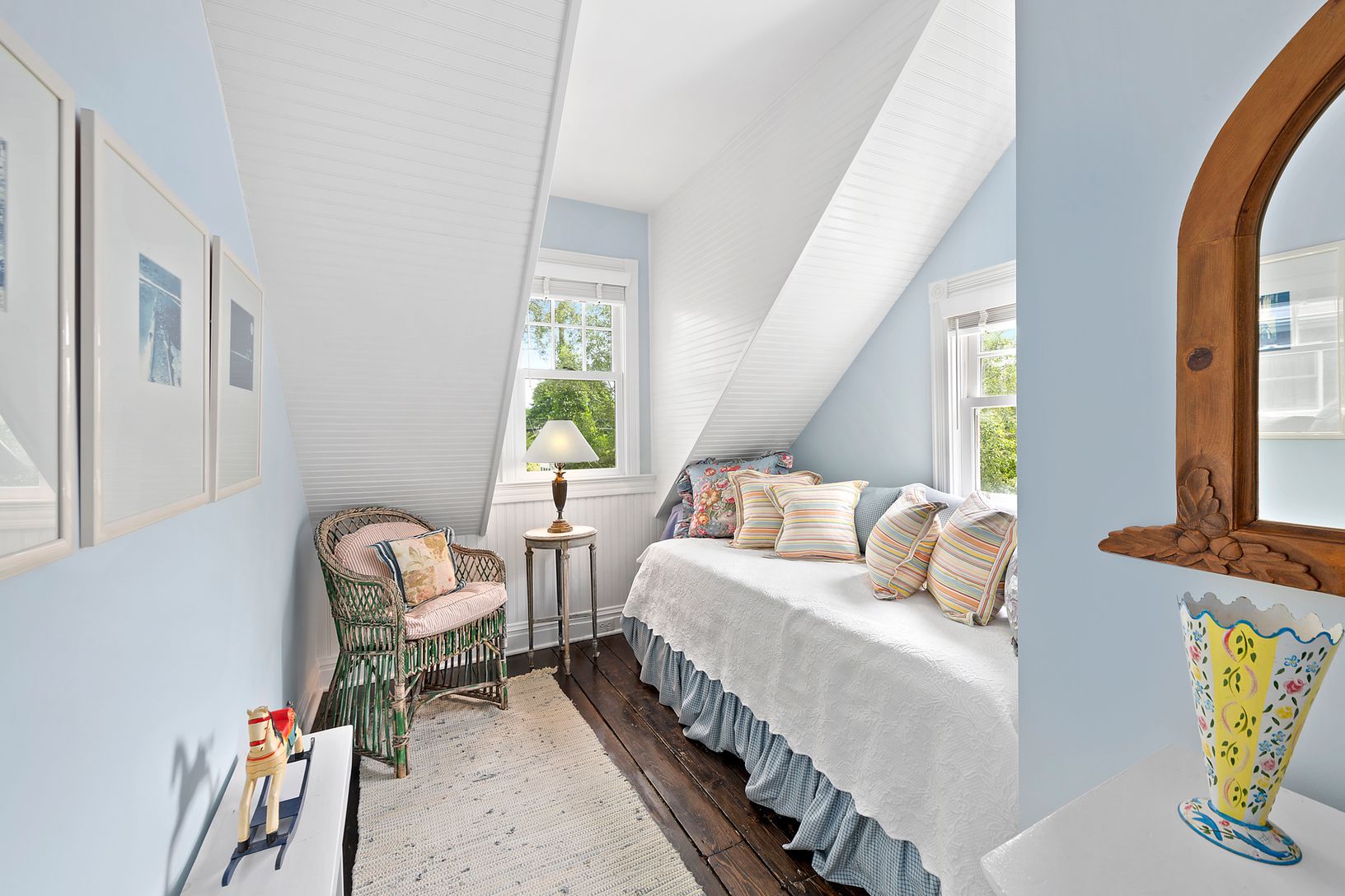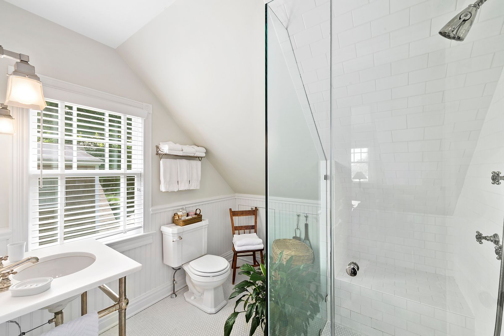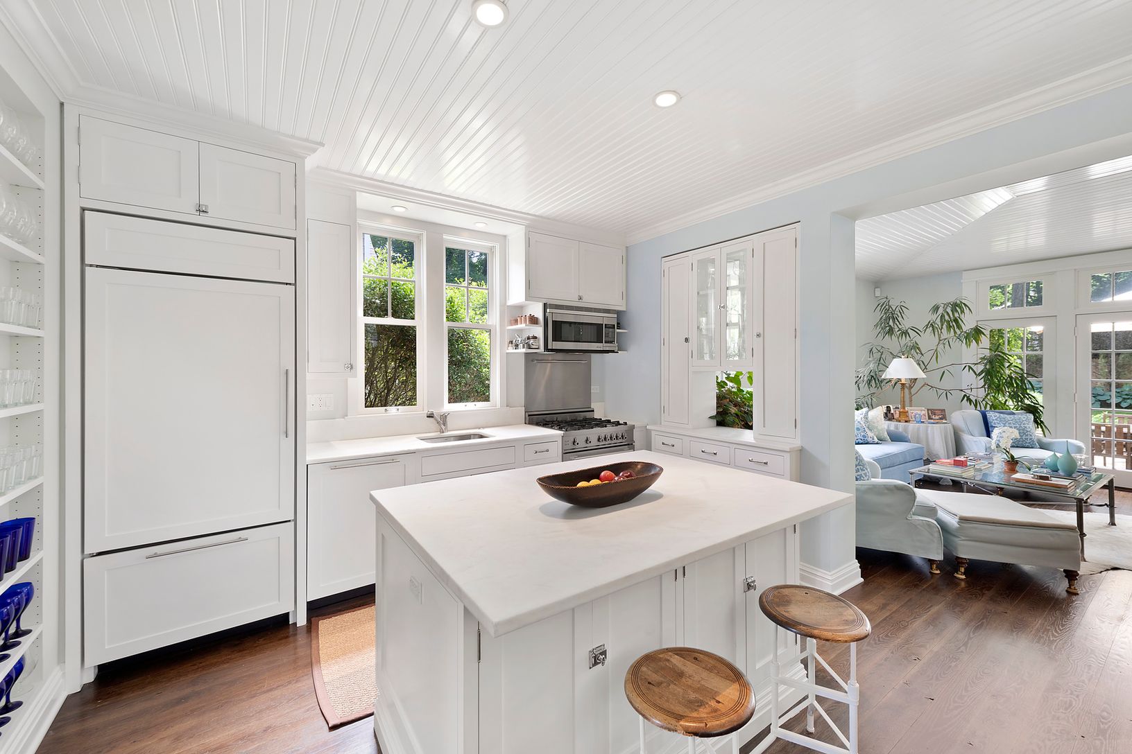 Decorator's own vintage 1910 Queen Anne-style, renovated and furnished with a purist's eye for detail. A few minutes to the wharf (Bay Street Theatre) and Main Street. Across the street from Havens Beach. The interior features inviting living spaces including a front parlor/family room, a charming chef's kitchen with sugar white marble counters, custom cabinetry, Sub-Zero, Bertazzoni, Dacor and Kitchen Aid appliances. Dining area with limeston