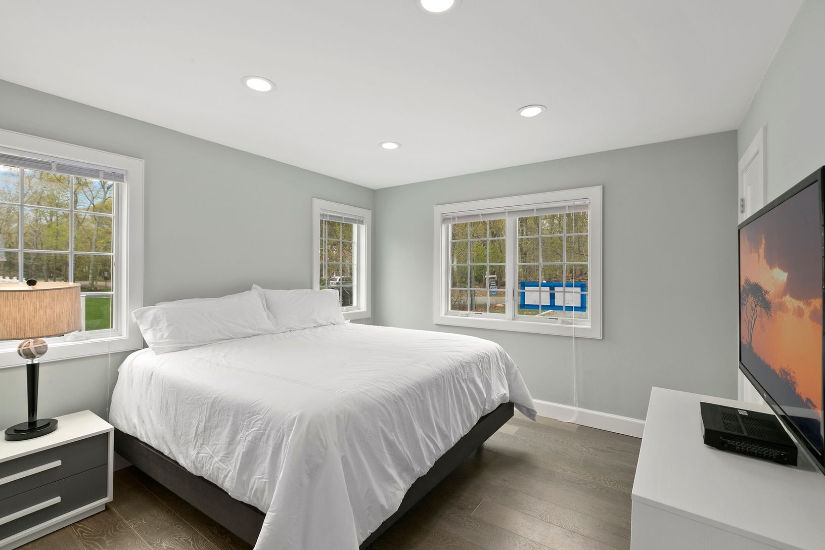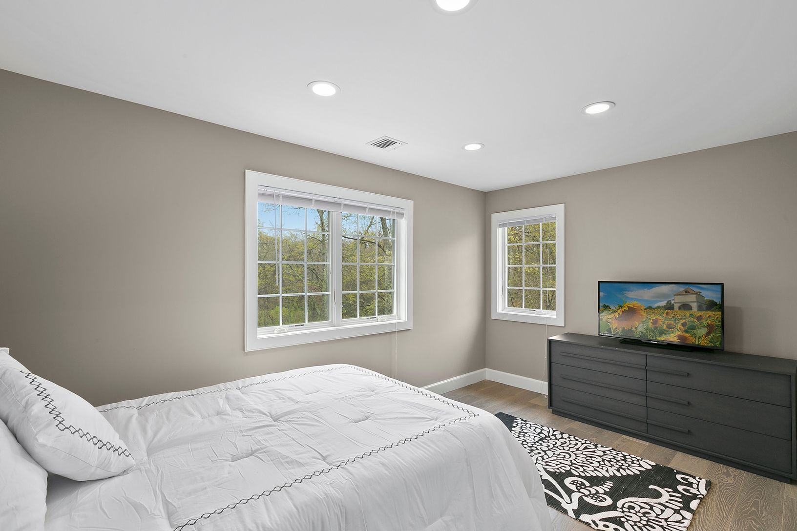 Sag Harbor on a quiet side street conveniently located to the Village and within walking distance to this beach. This newly constructed home and features four-five bedroom, three and one-half bath home, and features an open double height living room, gourmet kitchen with breakfast bar, dining area with fireplace. The kitchen features white Shaker-style maple cabinetry, marble counters, and a stainless steel appliance package. In addition ther