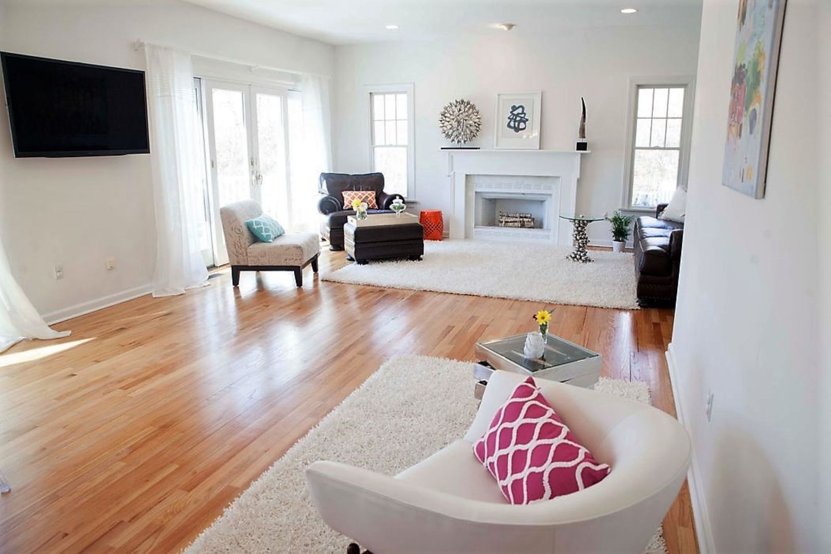 This fIve bedroom traditional home is fresh and newly furnished. The first floor offers light filled open living room, entertaining room and office space, formal dining room and gourmet kitchen.Tastefully furnished guest rooms are located on second floor. Spacious deck and pool are ideal for entertaining and relaxation. Great and comfortable summer rental.