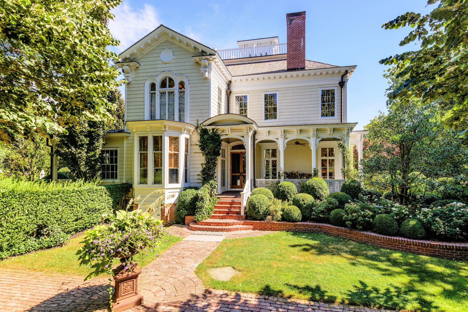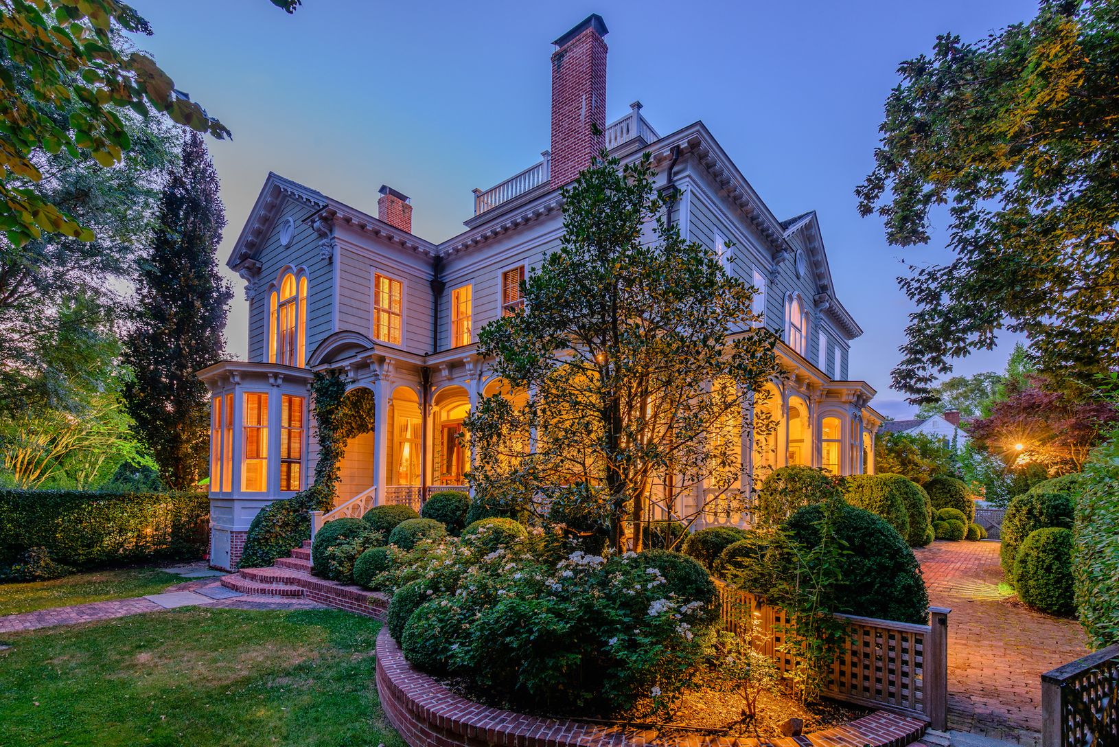 The historic Nathan P. Howell house is the largest property on renowned Captain's Row and a rare example of period architecture, impeccably renovated to the highest level with original details including the double-hung sash windows, shutters, acanthus leaves, and moldings, expert craftsmanship, fine millwork and trim, antique wide plank floors, and marble mantles. This amazing property is on over an acre, totally landscaped with specimen trees