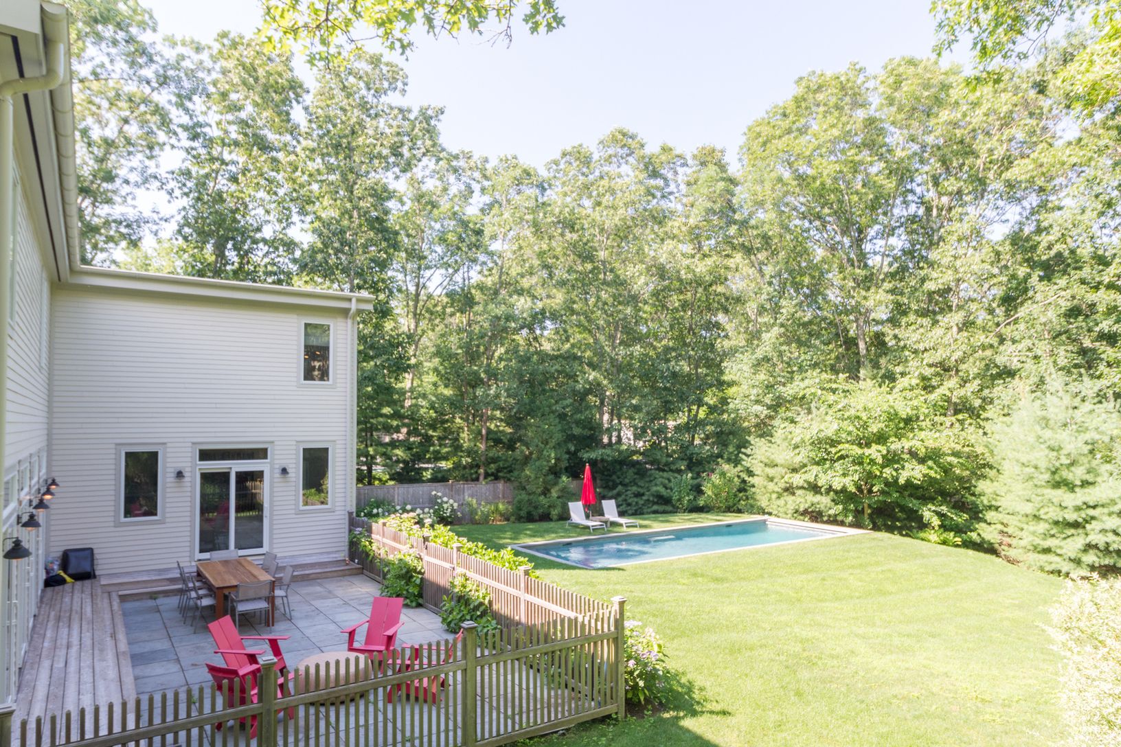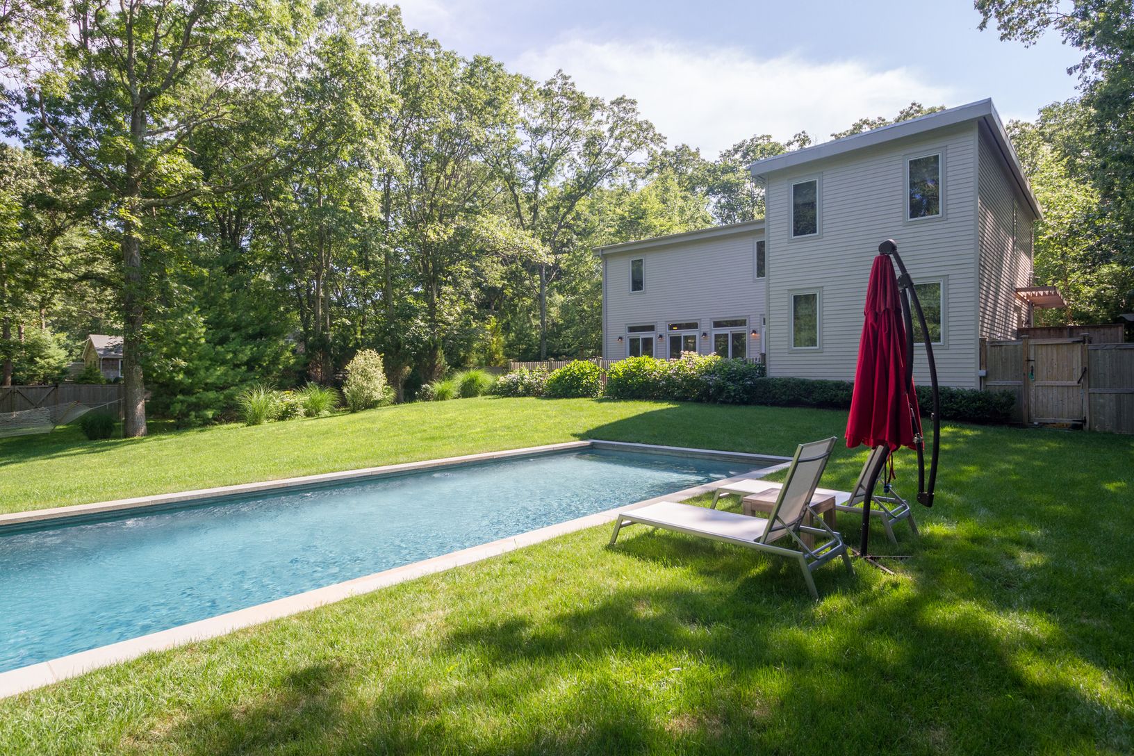 This fabulous modern residence features 4 bedrooms, 3 1/2 bathrooms, open dining, kitchen and living room concept plus separate den. Comfortable set up on two levels, this smart floor plan allows for great entertaining and maximum privacy. Outside you can enjoy a large heated pool, expansive deck for entertaining, outdoor shower plus it is conveniently located near Long Beach and Sag Harbor village shops and restaurants.