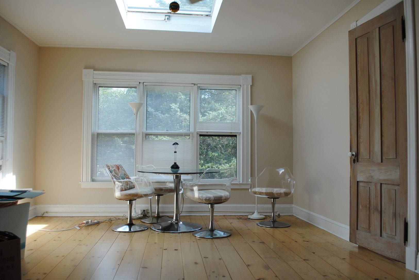 1890s Sag Harbor traditional style building with first floor dedicated to large space suitable for gallery or selling art supplies. There are three bedrooms on the second floor, plus two full bathrooms and wood stove in the open living room/dining room area. Lots of foot traffic passing the gallery's showroom windows.