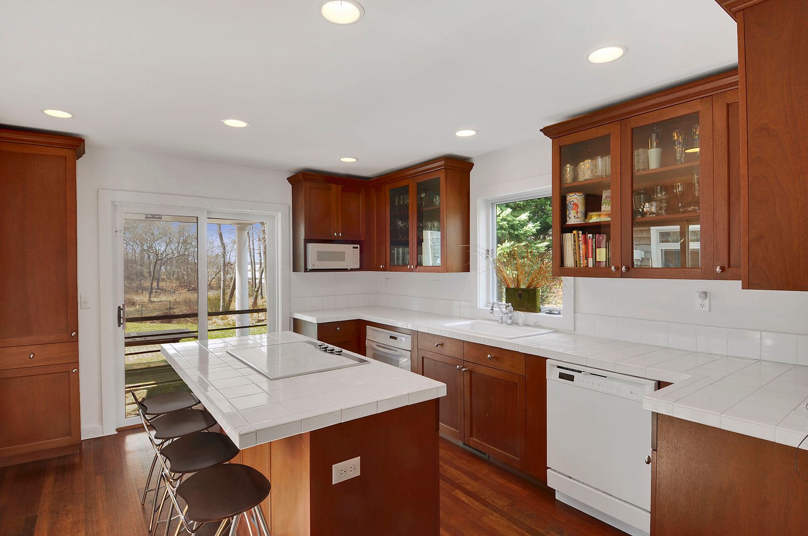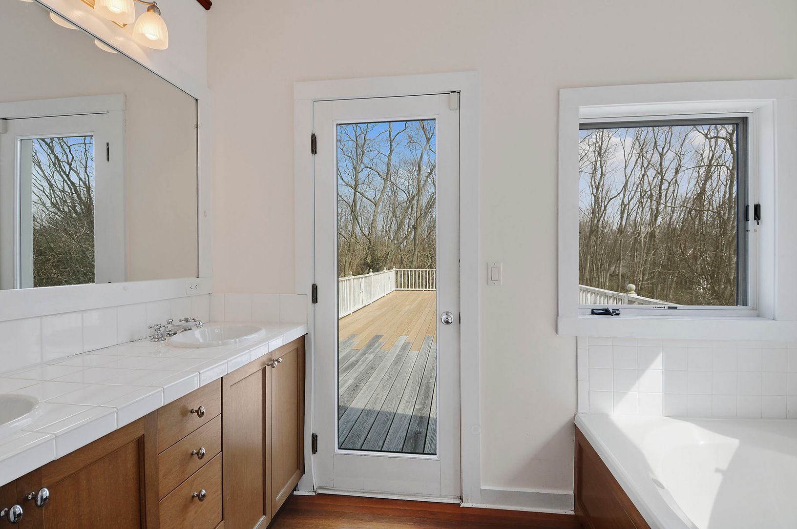 Floors: Hardwood, Tile