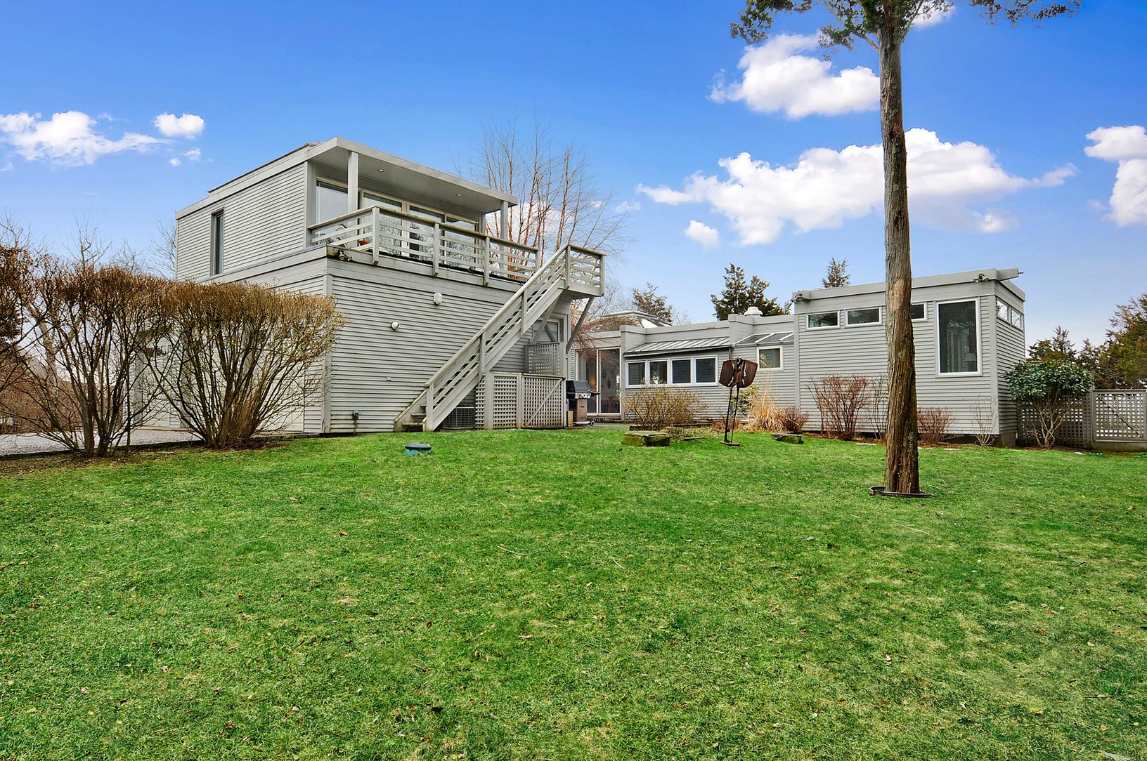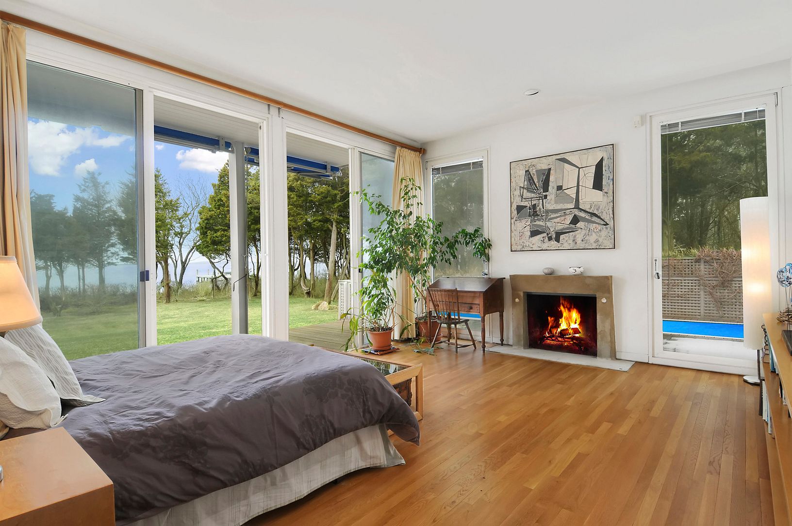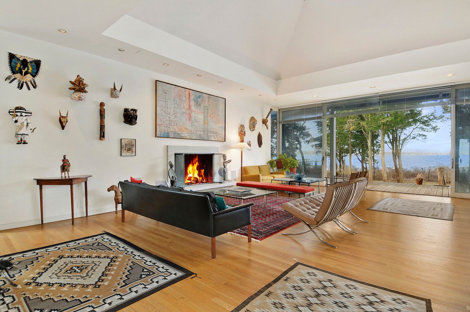 Very rarely does a home of this caliber become available in North Haven. The beautiful waterfront contemporary is designed to capture sensational sunset views and bay breezes from nearly every room. The expansive glass walls can all be opened to enhance the pleasure of almost every room. The living room offers an open floor plan with fireplace, vaulted ceiling and dining area while the cozy den also has a fireplace and moving wall of glass. Th