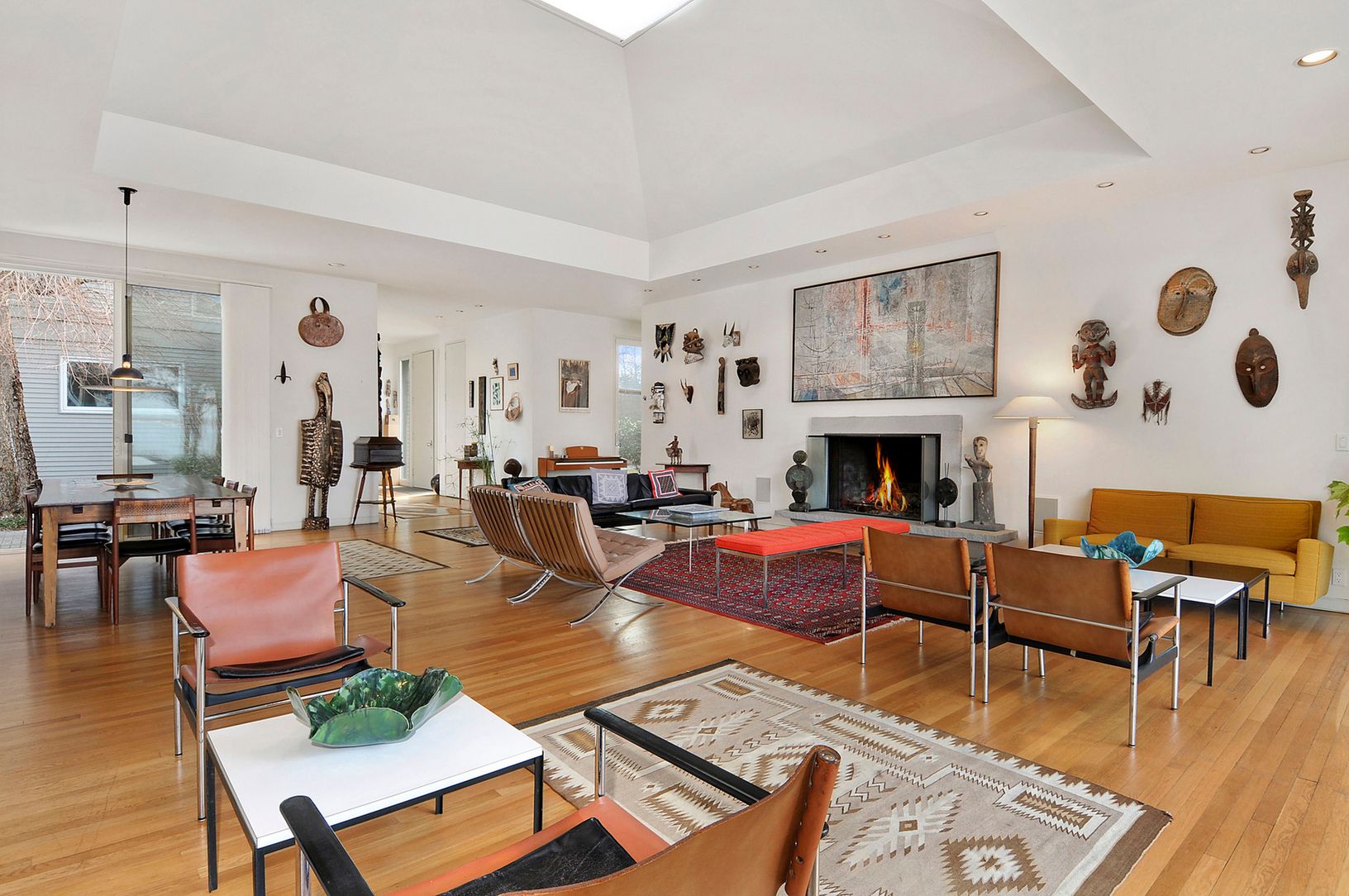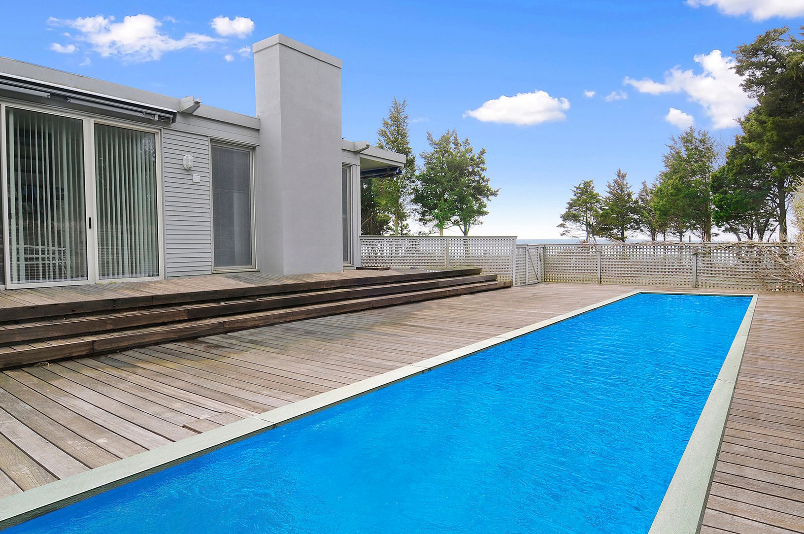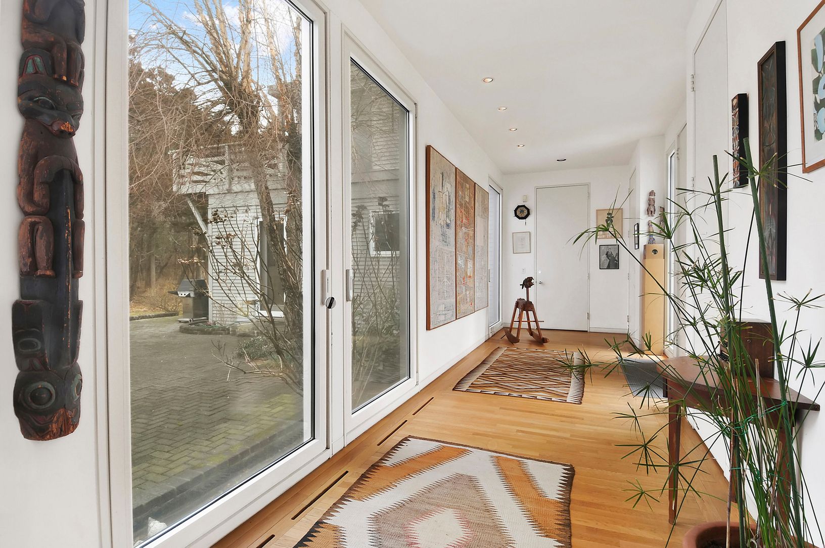 Very rarely does a home of this caliber become available in North Haven. The beautiful waterfront contemporary is designed to capture sensational sunset views and bay breezes from nearly every room. The expansive glass walls can all be opened to enhance the pleasure of almost every room. The living room offers an open floor plan with fireplace, vaulted ceiling and dining area while the cozy den also has a fireplace and moving wall of glass. Th