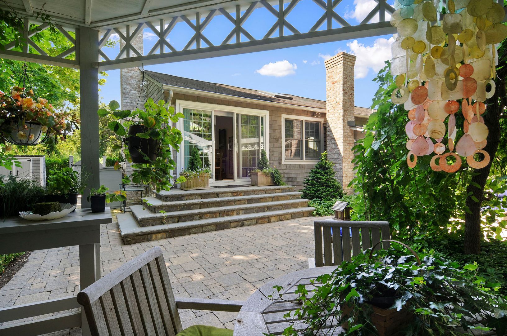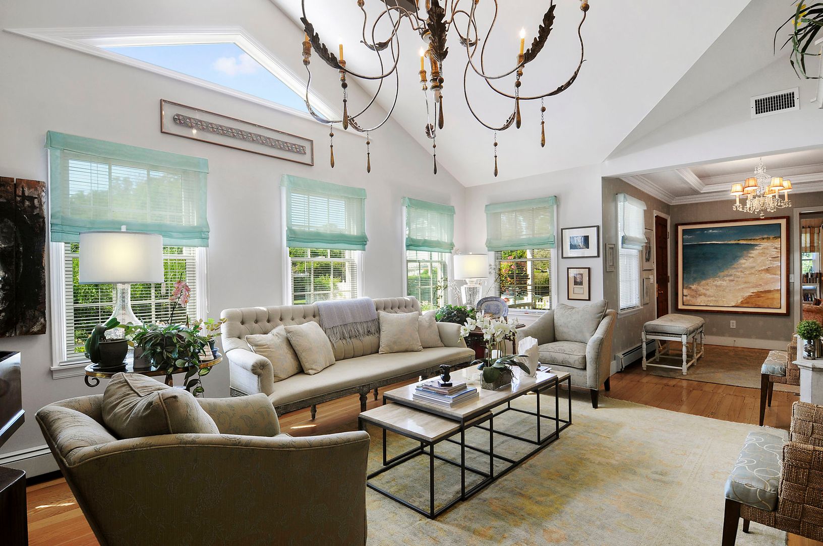 A unique combination of elegance and charm, this beautifully renovated home is in immaculate move-in condition. Exceptional design elements abound, from the herringbone brick driveway and covered front porch to the cathedral-ceilinged living spaces complemented by extensive windows and French doors to the lovely grounds. A new gourmet kitchen, fireplace, three bedrooms, central air-conditioning and hardwood floors. Outside, a large stone patio