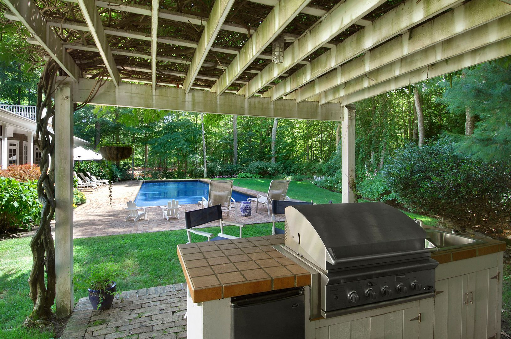 Traditional redone in 2013.This 5,000 sq. ft. home features the following. Main floor has grand entrance, living room, formal dining room, EIK with breakfast bar and dining area, den with bath, master suite and laundry room with bath to outside. Second floor has mini master with French doors to small roof deck overlooking backyard pool and gardens. Two other bedrooms share a bath. Basement is finished with a bedroom, bath, media room, pool ta