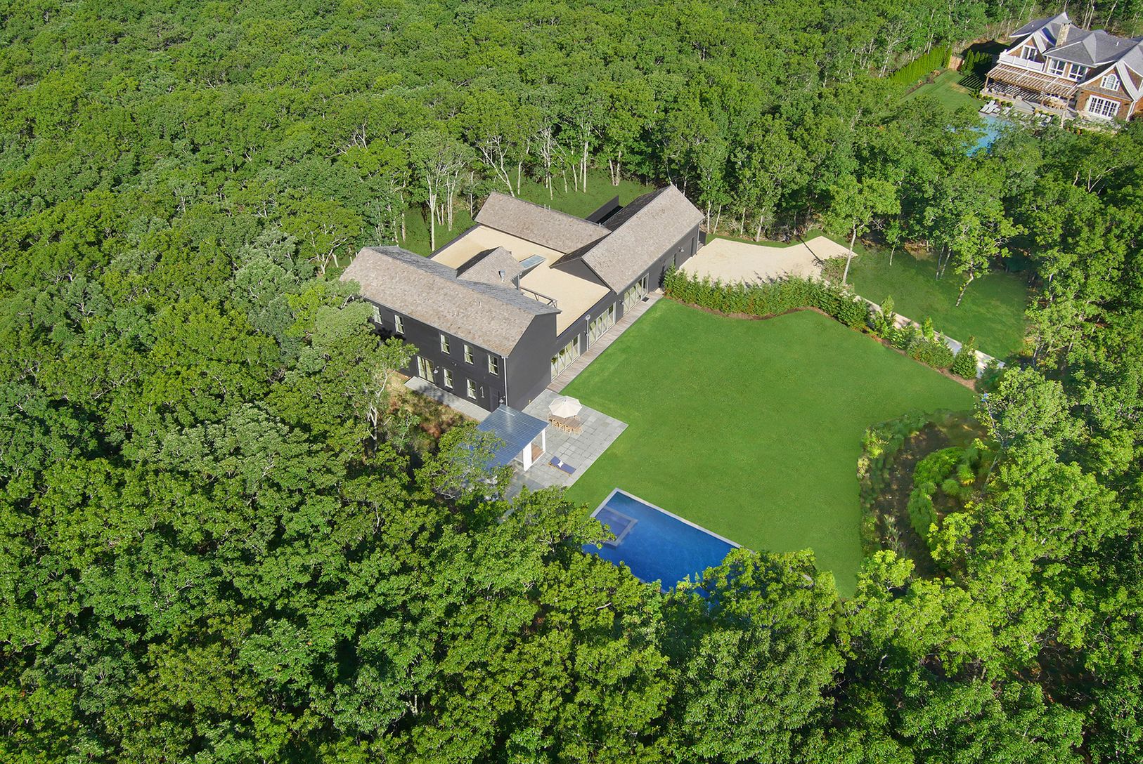 BlackBarn 2 located in Sag Harbor and situated on over 2.4+/- acres, is the second of a limited series of BlackBarns by renowned designer Mark Zeff, each of which are inspired by the barns and farmhouses of the East End, with a bespoke modern sensibility that seamlessly integrates into the canvas of the land. Masterfully conceived and constructed utilizing elements such as industrial staircases, modern expansive storefront windows, one of a k