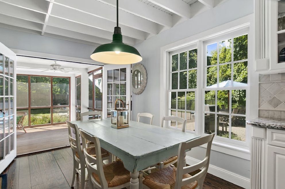 Desirable Sag Harbor Village rental on a private half acre with a heated pool. Open plan Living Room/Dining Room/Kitchen opens onto a large screen porch overlooking the pool. There's a first floor bedroom with bath plus 2 bedrooms up. Plus there is a finished lower level. The pool area is remarkably private plus Havens Beach is nearby.