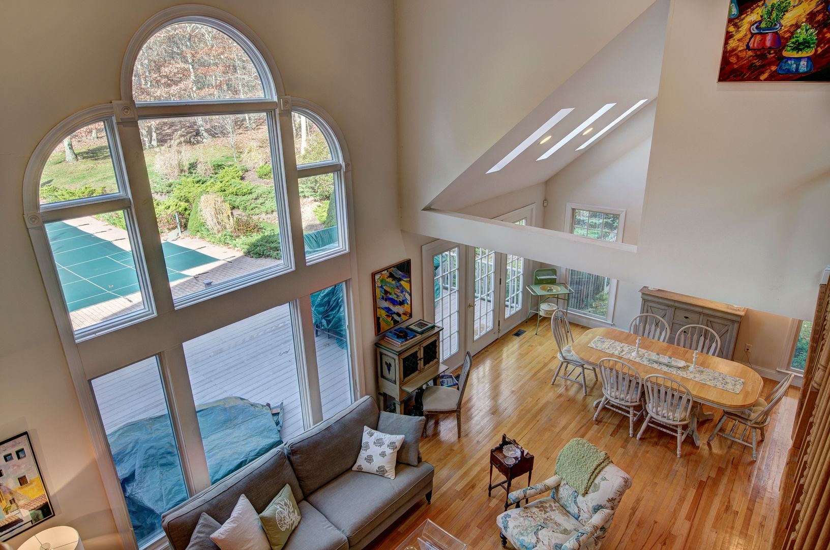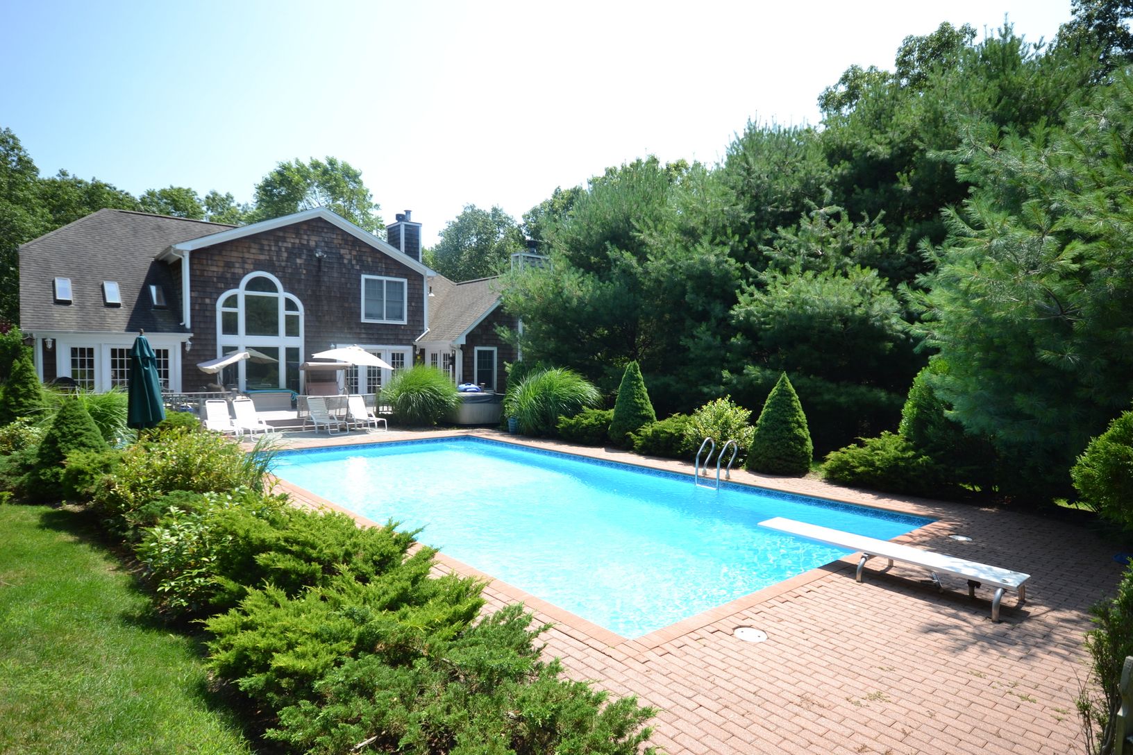 ***SALE PENDING, CURRENTLY UNDER CONTRACT*** On a quiet lane sits this traditionally shingled, spacious Post Modern with 6 bedrooms, 5.5 baths, open cathedral ceiling great room with fireplace, soaring windows & skylights, den with fireplace, cozy library, office, gourmet kitchen, lots of French doors leading to a 20 x 40 heated terraced pool. Master suite, junior suite on the first floor with powder room. Second floor with 3 bedrooms a