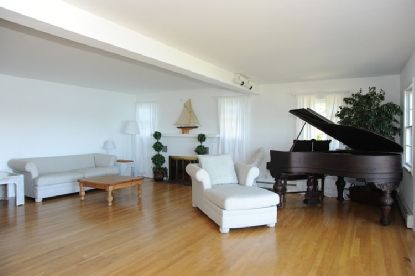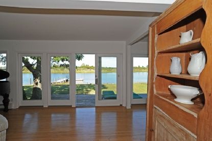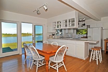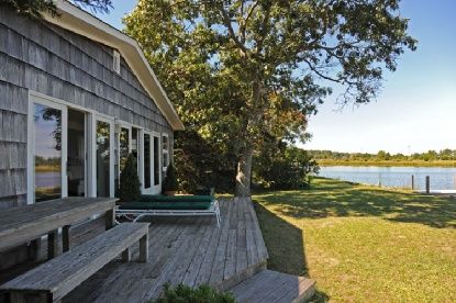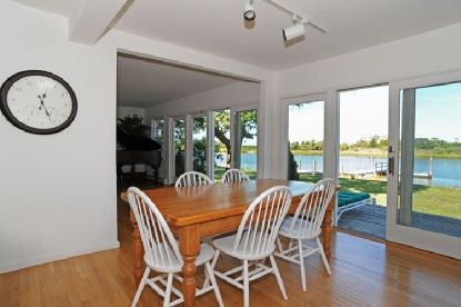 Beautiful views across Sag Harbor Cove. White, bright and crisp 2 bedroom, 1.5 bath, open floor plan with fireplace, living room, dining room and kitchen. Lovely detached studio and new deep water dock. Room to expand and room for a pool.
