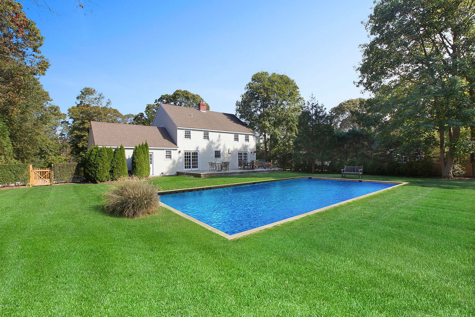 Immaculately maintained and spacious 3 bedroom, 2.5 bath traditional on a quiet cul de sac. Beautifully decorated featuring eat-in kitchen, living room with fireplace, dining room, wide planked flooring and French doors throughout. All in a private .5+/- landscaped acre with heated pool and access to Mashashimuet Park. Mint move-in condition.