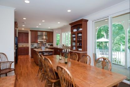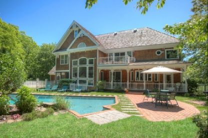 Traditional shingled home in North Haven Point offers expansive living spaces for both formal and relaxed country living. The grand entry leads to the living and dining rooms, an expansive cook's kitchen, perfect for entertaining, a light- filled family room, and a downstairs home office or guest suite. The three-season screened porch overlooks the gardens, and pool with water views. On the second level there are four bedrooms including a l