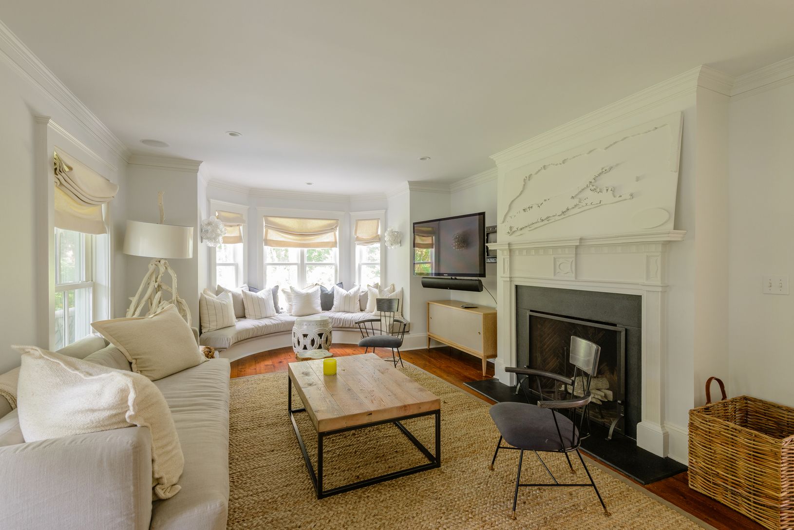 Recently renovated, wonderfully inviting historic home designed for seaside living on John Street welcomes with a romantic front porch entry leading to the living room with fireplace and bay windows overlooking the elegant and serene private garden. Dining room, den, cook's kitchen with Viking appliances, and a sunroom with fireplace complete the entry level. En suite master bedroom, three guest bedrooms and two baths are on the second level